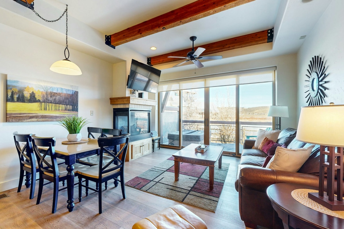 Chào mừng bạn đến với ngôi nhà phố tuyệt đẹp này! - 2 phòng ngủ và 2 phòng tắm với tổng cộng 3 giường cho tối đa 6 khách. - Phòng khách ấm cúng có lò sưởi gas, TV thông minh và sân hiên riêng. - Nhà bếp đầy đủ tiện nghi với các thiết bị bằng thép không gỉ và quầy đá granit. - Bồn tắm nước nóng riêng để thư giãn. - Nằm gần các cửa hàng, nhà hàng và đường mòn Swaner Preserve của Redstone. - Dễ dàng đến Park City Mountain Resort và Deer Valley Resort.