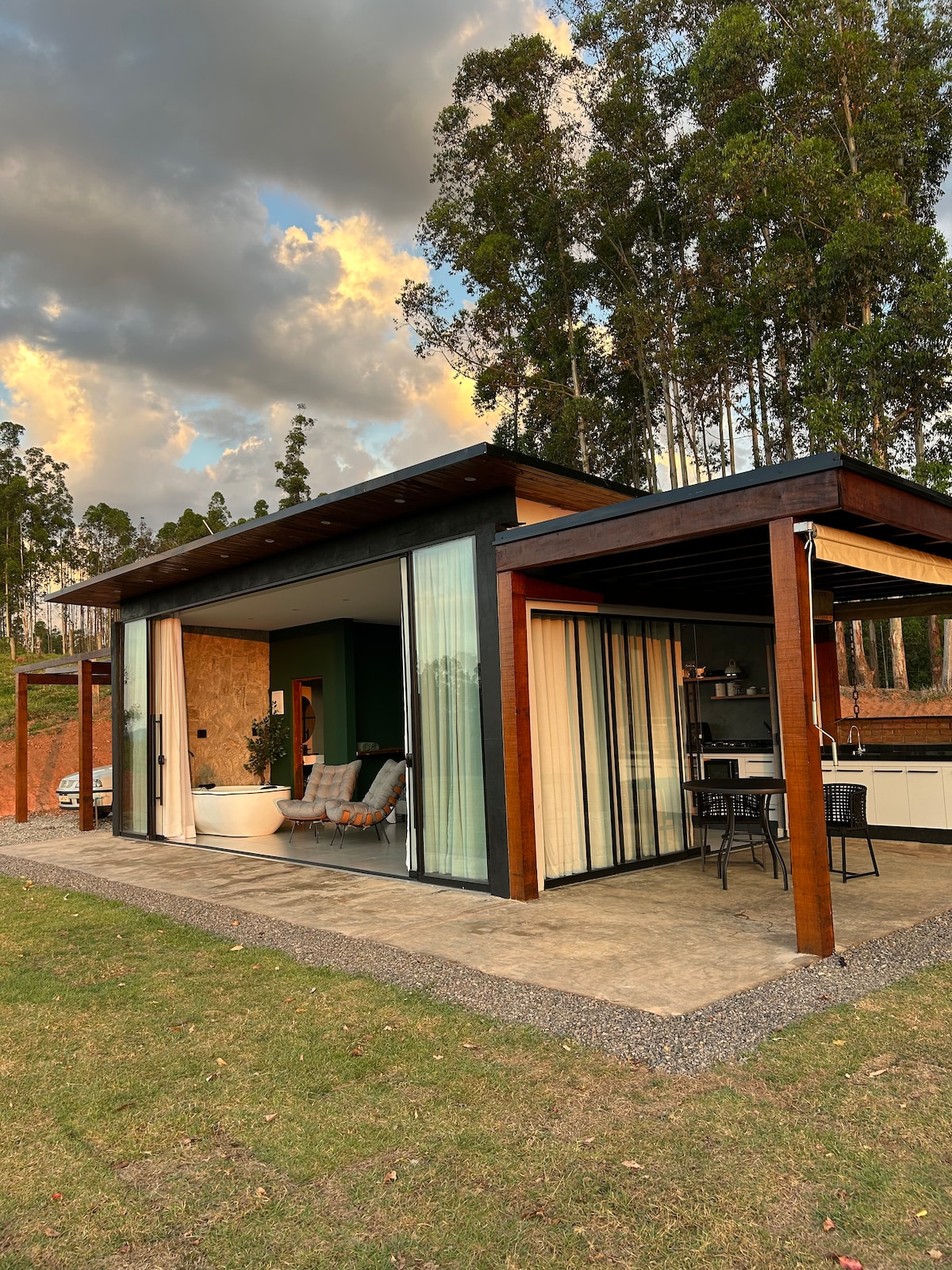 Tận hưởng một trải nghiệm độc đáo khi ở trong một khu rừng RIÊNG TƯ 100%. Tất cả đều được làm bằng gỗ và kính với không gian được thiết kế để hòa mình vào thiên nhiên. Chúng tôi có lửa sàn, spa cho 8 người, phòng xông hơi khô, cân bằng, vòi sen ngoài trời, thịt nướng nóng, đường đi bộ đường dài mini, nồi nước sốt, các dụng cụ gia đình khác nhau, chúng tôi cung cấp bọt tắm, củi và than củi, cũng như khăn tắm và khăn trải giường hàng đầu. Chúng tôi đang chờ bạn! @cabana_mantiqueira