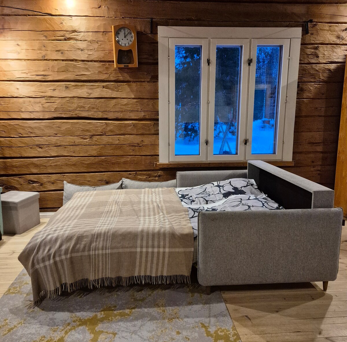 Cabin gỗ ấm cúng bên một con sông, được bao quanh bởi thiên nhiên của Lapland – nhưng chỉ cách các dịch vụ trung tâm Sodankylä 10 km. Bao gồm một nhà nghỉ thôn dã xông hơi riêng biệt với phòng xông hơi bằng gỗ truyền thống của Phần Lan. Vào mùa đông: trượt tuyết, câu cá trên băng hoặc trượt tuyết thẳng từ sân. Vào mùa hè: thích câu cá, đi bộ đường dài, bơi lội và các hoạt động ngoài trời khác. Quận Luosto 50 km Pyhä 80km Rovaniemi 140 km. Đã bao gồm vệ sinh lần cuối. Hoàn hảo cho những người yêu thiên nhiên đang tìm kiếm sự yên bình và thoải mái gần các dịch vụ.