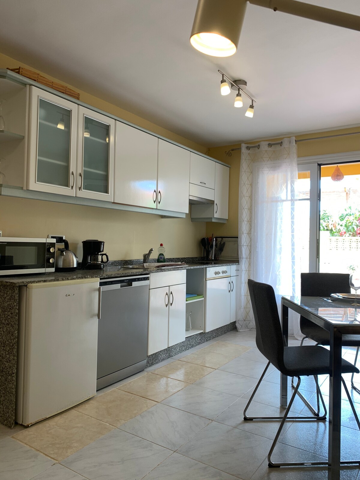 Accogliente e comodo appartamento a piano terra in un residence vicinissimo all’oceano e alla Riserva Naturale El Saladar, un tratto della lunghissima spiaggia di Jandía famosa per sport acquatici e acque cristalline. Di fronte ai campi da tennis.A pochissimi passi da ristoranti, bar, locali, negozi, supermercato, farmacia e ogni comodità. Wi-Fi con fibra 100Mb/s. Aeroporto a 80 km.