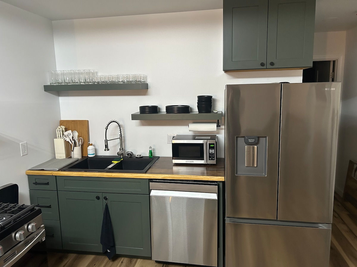 Welcome to our modern and cozy 1-bedroom, 1-bathroom space, perfect for up to 4 guests. Enjoy a peaceful stay with flexible sleeping arrangements. The fully equipped kitchen includes everything you need, plus a washer and dryer for added convenience. This quiet and comfortable space is ideal for small families, couples, or friends looking for a relaxing home away from home. Whether you're here for a short stay or longer, you’ll have everything you need to feel right at home!