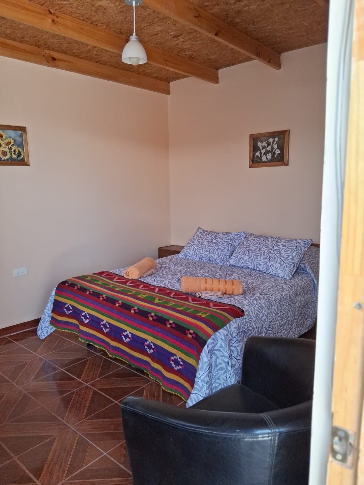 "Refugio de Paz" es un oasis de tranquilidad en el desierto de Atacama. Ofrece un entorno acogedor y único para escapar del estrés. Está rodeado de naturaleza impresionante, con vistas panorámicas del desierto y sus montañas. Alojamiento: - Cama de dos plazas - Refrigerador y cocina equipada - Microondas y freidora de aire - Utensilios y equipo de cocina - Baño, ducha, agua caliente - Directv - Mini terraza y estacionamiento Ven y descubre este lindo refugio a 4 kms de San Pedro de Atacama.