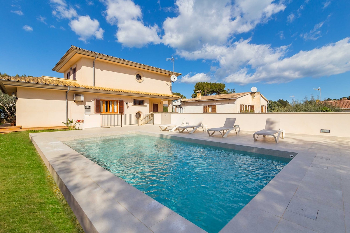 Biệt thự sang trọng đẹp nằm cách bãi biển Muro và Can Picafort 5 phút. Ngôi nhà hiện đại được cải tạo nằm trong khu vực yên tĩnh gần một trong những bãi biển đẹp nhất trên đảo. Nó có hồ bơi riêng với bể sục, khu vực bãi cỏ và vườn rộng lớn, có sân thượng và thịt nướng. Ngôi nhà có tất cả các tiện nghi (WiFi tốc độ cao, TV thông minh và điều hòa không khí trong mỗi phòng.). Chỉ cần thư giãn và tận hưởng một kỳ nghỉ khó quên!