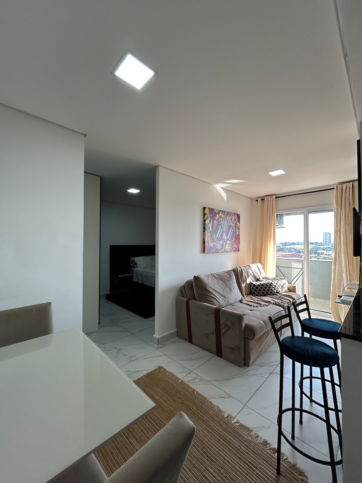 Este estúdio foi projetado para oferecer uma experiência única, unindo conforto, estilo e praticidade. A decoração moderna e cuidadosamente planejada cria um ambiente acolhedor e sofisticado — perfeito para relaxar ou trabalhar com tranquilidade. Cada detalhe reflete charme, exclusividade e bem-estar. Reserve e sinta-se em casa! Temos berçinho para receber bebês 👶