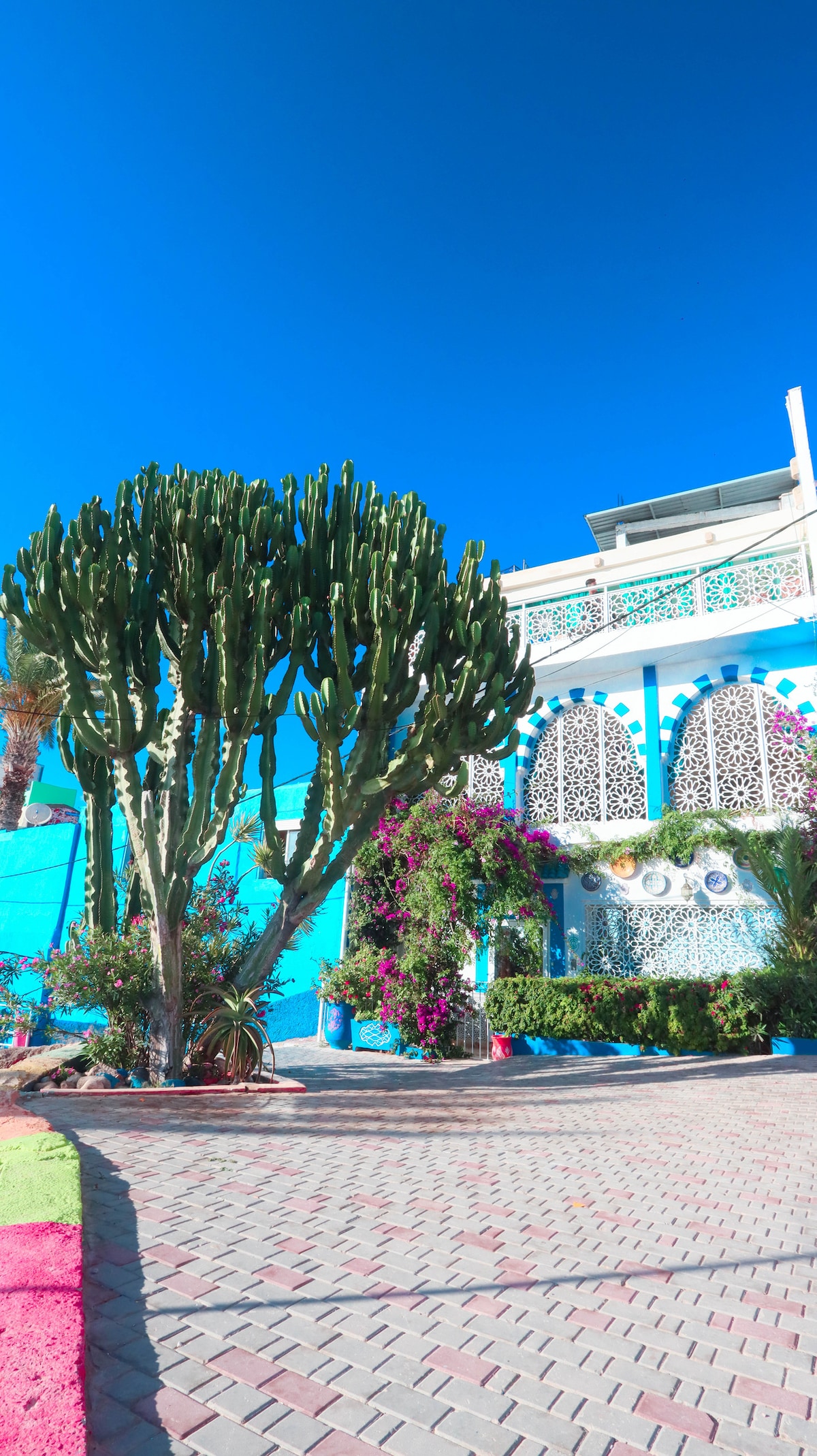 Ẩn mình trong ngôi làng Aghroud đầy màu sắc sôi động, Rosyplage là một viên ngọc quý bên bờ biển có tầm nhìn quang cảnh đại dương tuyệt đẹp từ mỗi phòng. Tầng trệt: studio được trang bị đầy đủ tiện nghi ở tầng 1 mang lại cảm giác như đang ở trên thuyền với phòng khách kiểu Ma-rốc và TV 75 inch có Netflix. Hai phòng ngủ hướng ra biển đang chờ bạn ở tầng trên. Tầng trên cùng: nhà bếp dẫn đến sân thượng, tiếp theo là phòng tắm nắng ngập nắng lý tưởng để tập yoga và ngắm hoàng hôn. Lưu ý: Chỗ ở được trang bị camera giám sát ở lối vào. Nhà có 4 tầng cầu thang không phù hợp