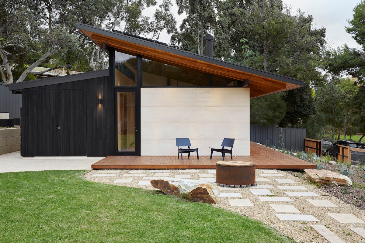 Tách biệt với ngôi nhà của chúng tôi và nép mình giữa những ngọn cây, studio lấy cảm hứng từ dãy núi Alps của chúng tôi hứa hẹn sự pha trộn giữa sự ấm áp và tiện nghi hiện đại. Thức dậy với tiếng chim hót khi buổi sáng tắm mình trong ánh sáng dịu nhẹ. Từ ban công của bạn, hãy thưởng thức những bức tranh toàn cảnh được bao quanh bởi những chiếc nướu lớn. Khám phá những con đường mòn tự nhiên gần đó, nhà máy rượu vang địa phương và các nhà máy rượu vang nổi tiếng của McClaren Vale. Với sự thân thiện của Labradors và gia đình chúng tôi, hãy mong đợi sự pha trộn giữa lòng hiếu khách và sự riêng tư. Bếp nhỏ được trang bị chu đáo. Wifi NBN nhanh.
