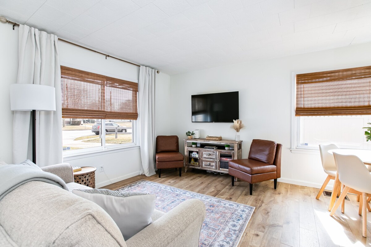 Chào mừng bạn đến với Blue & Gold Bungalow, một nơi nghỉ dưỡng 3 phòng ngủ mới theo phong cách cách chưa đầy một dặm từ Notre Dame, Saint Mary's và Holy Cross. Tản bộ ~15 phút (0,8 dặm) đến sân vận động cho ngày thi đấu hoặc đi bộ 20 phút đến các nhà hàng và bờ sông ở trung tâm thành phố South Bend. Chúng tôi có nệm Casper, Wi‑Fi nhanh, kiểm soát khí hậu tại nhà thông minh và một sân có hàng rào để điều chỉnh, làm cho Bungalow trở thành bệ phóng hoàn hảo cho các gia đình, bạn bè hoặc du khách trong khuôn viên trường đang tìm kiếm một kỳ nghỉ cao cấp, đáng nhớ!