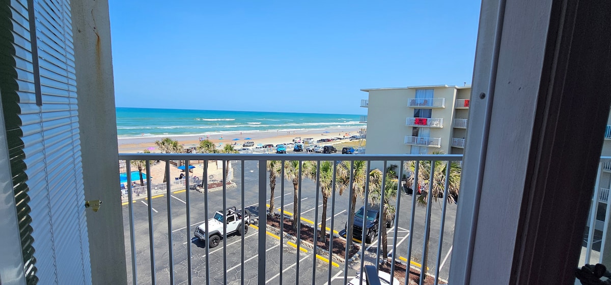 * ** Hồ bơi và lối ra bãi biển hoàn toàn mới đang mở cửa!*** Chào mừng bạn đến với Daytona Beach Bliss! Tận hưởng studio hướng biển mới được sửa sang lại của chúng tôi chỉ cách bãi biển vài bước chân. Ban công riêng ở tầng 5 có tầm nhìn thẳng ra biển tuyệt đẹp! Ngắm bình minh vào buổi sáng và bạn thậm chí có thể bắt gặp một số con cá heo! Tọa lạc tại Daytona Beach Club, studio ấm cúng này ngủ 4 người với giường cỡ King và ghế sofa kéo ra. Chỗ ở phù hợp nhất cho 2 người lớn hoặc một gia đình có 2 người lớn và 1-2 trẻ em.