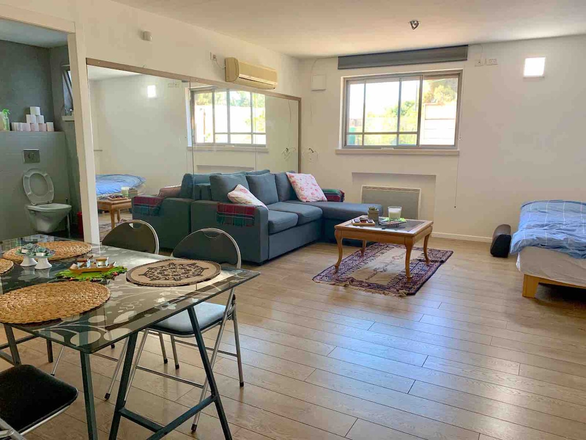 Studio thanh lịch, rộng lớn, thoáng mát trong môi trường xung quanh yên tĩnh, nhiều cây xanh, mở ra một khu vườn riêng. Studio cách bãi biển hoặc trung tâm thị trấn 5 phút lái xe. Nó có lối vào vườn riêng từ bãi đỗ xe trên đường phố. Studio cung cấp một giường đôi lớn thoải mái. Một chiếc ghế dài, trong khu vực tiếp khách, mở ra thành giường cho 2 trẻ em. Có một phòng tắm đáng yêu để tắm vòi sen sảng khoái sau một ngày tại bãi biển. Bếp nhỏ có tủ lạnh, lò nướng bánh mì, máy pha cà phê và ấm đun nước, được trang bị các dụng cụ ăn uống và nấu ăn nhẹ và mở cà phê, trà, bánh quy và rượu vang. Khách sẽ tìm thấy khẩu trang, ống thở và khăn tắm biển để sử dụng. Có TV thông minh với quyền truy cập Netflix. Chúng tôi rất mong được đón tiếp bạn Natalie