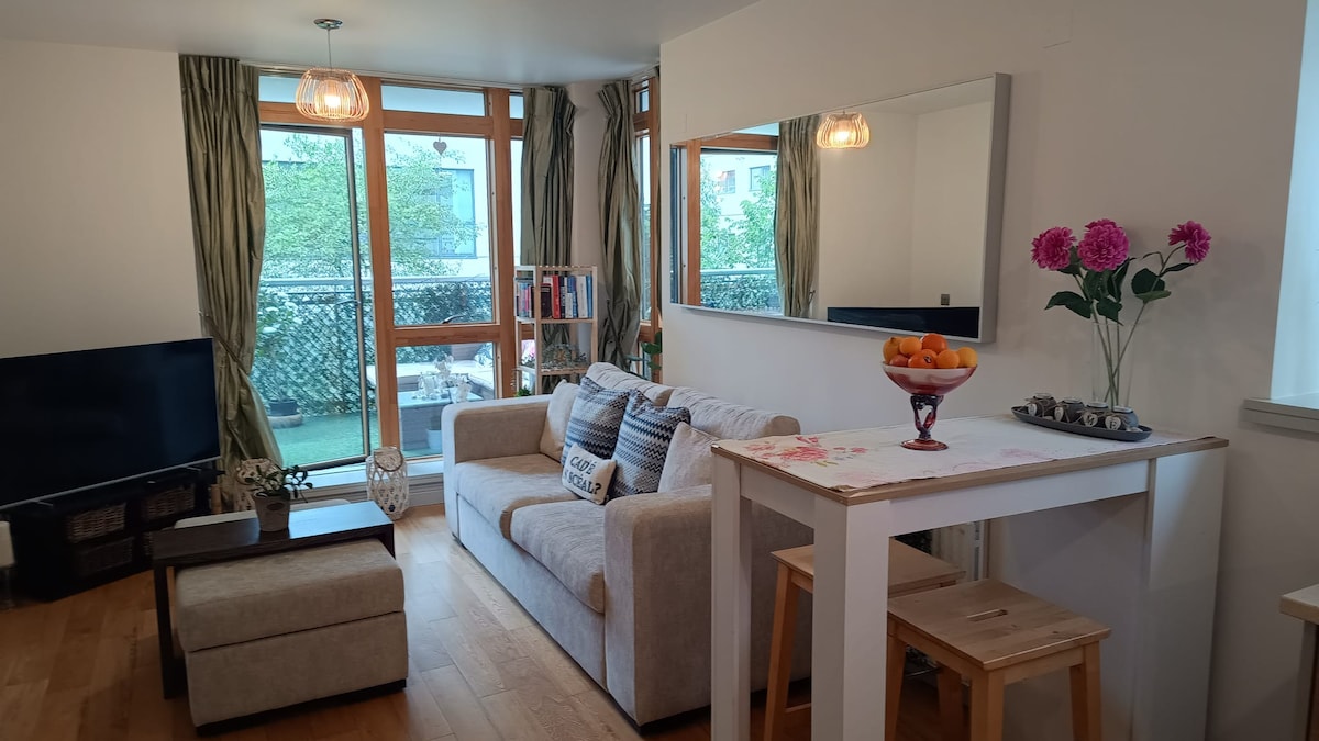 Một căn hộ 2 phòng ngủ cách trung tâm thành phố dưới 3 km. Phòng khách có sofa giường và có thể ngủ tối đa 6 người một cách thoải mái. Chỉ mất 12 phút đi xe buýt đến trung tâm thành phố (tham khảo bản đồ google cho xe buýt) Gần nhiều điểm tham quan thú vị ở Dublin. Nhà cửa hàng Guinness cách đó 13 phút đi bộ Công viên Phoenix cách đó 10 phút đi bộ Memorial Gardens chỉ cách 3 phút đi bộ Kilmainham Goal cách đó 5 phút đi bộ. Bảo tàng Nghệ thuật Hiện đại Ireland cũng cách đó 5 phút đi bộ