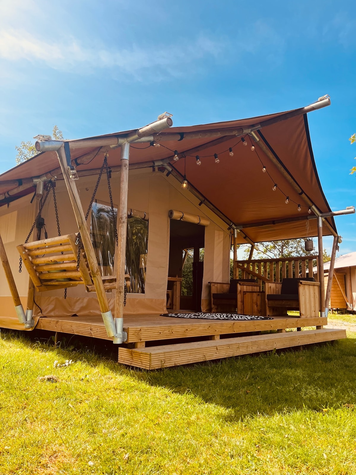 Tránh xa cuộc sống hằng ngày và đặt ngay lều safari sang trọng của chúng tôi! Lều safari này có 1 giường đôi, một giường tầng và một giường phụ, bếp đầy đủ tiện nghi, khu vực ăn uống và phòng tắm có vòi sen. Một sân thượng có mái che, nhìn ra đầm lầy. Lều vừa được dựng xong, chưa có bãi cỏ đẹp. Đó là lý do tại sao chúng tôi cho thuê lều với mức giá €115 thay vì €125/đêm. Có thể đặt BỒN TẮM NƯỚC NÓNG!