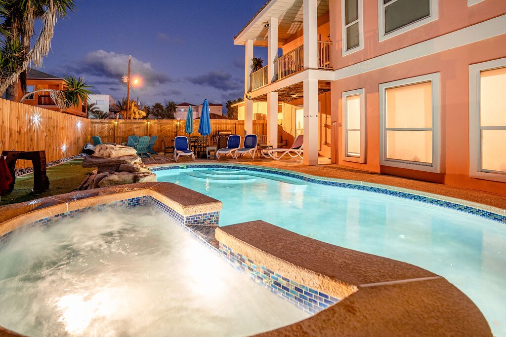 “Tuyệt vời!!!! Tất cả mọi thứ về ngôi nhà này đều tuyệt vời! Sự riêng tư trong khu vực hồ bơi sân sau rất tuyệt vời và Anthony đảm bảo nhóm của chúng tôi được chăm sóc tốt!” – Kelley, ‘23 Cây cọ mộc mạc và làn gió tây ấm áp mời bạn sống chậm lại và tận hưởng cuộc sống tại The Villa Beach Club of South Padre Island. Thư giãn trong spa trong khi lắng nghe dòng thác nước chảy vào hồ bơi 20’của chúng tôi, hoặc ngâm mình thư giãn được bao quanh bởi các khu vườn nhiệt đới, giúp bạn dễ dàng chuyển sang “Chế độ nghỉ dưỡng” đầy đủ!
