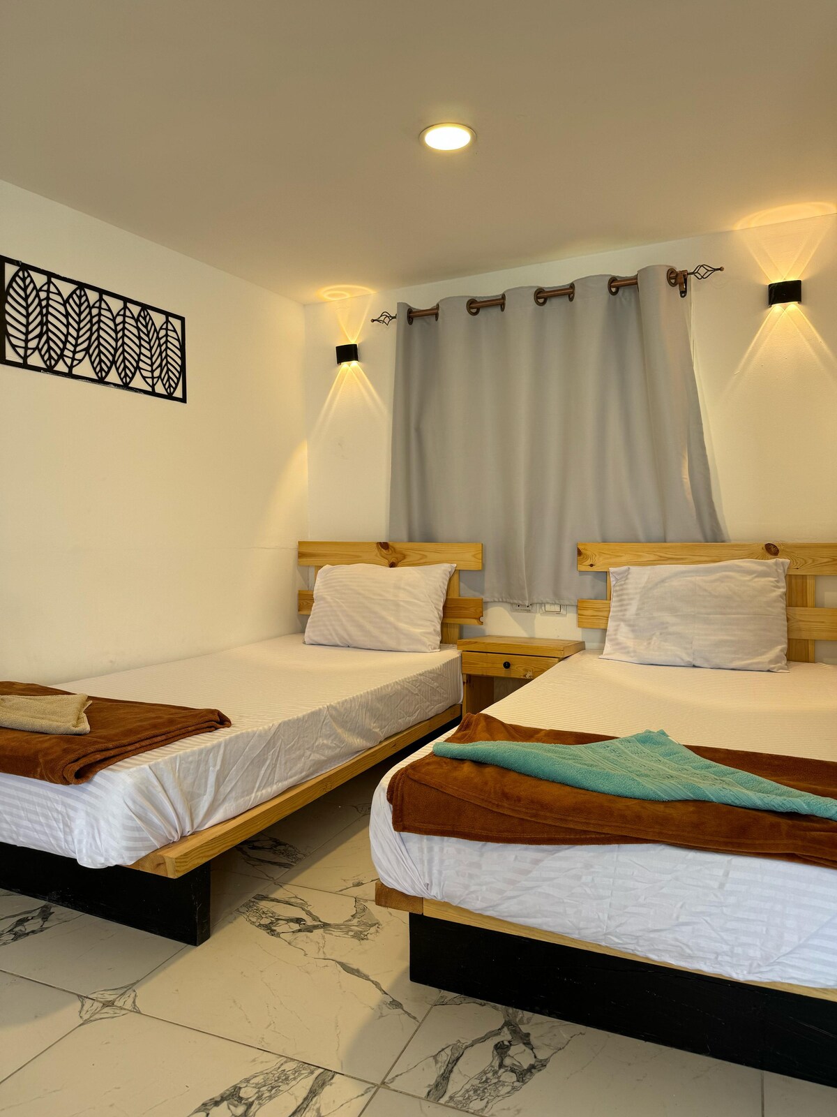 Room 50 – Double Room with Private Beach Access A comfortable double room offering calm back views and direct access to the hotel’s private beach area. Features two single beds, A/C, mini-fridge, clean bathroom with shower, soft linens, and daily essentials. A simple and quiet stay just steps away from the sea—ideal for travelers who want comfort and beach access at a great price.