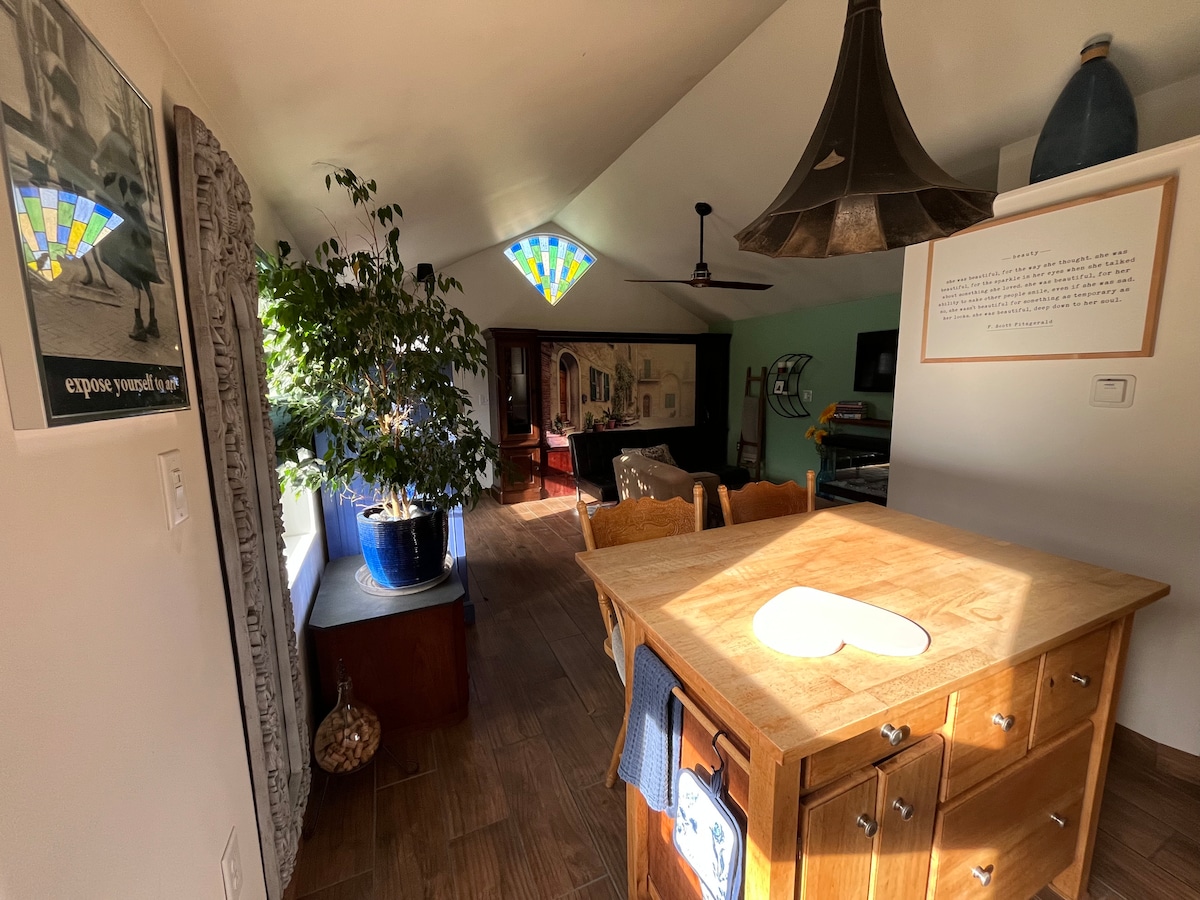 Tìm sự yên bình tại nơi nghỉ ngơi quyến rũ riêng tư này hoàn hảo cho một cặp đôi hoặc một khách duy nhất. Kính màu và cửa sổ phía nam thêm ánh sáng mặt trời vào ban ngày, trong khi sự ấm áp của lò sưởi chiếu sáng vào ban đêm. Phòng tắm hoàn toàn phù hợp với không gian thân mật. Giường Murphy cỡ Queen tạo ra sự thoải mái cho giấc ngủ. Trong khi một nhà bếp hấp dẫn được trang bị các tiện nghi cần thiết để làm cho bất kỳ đầu bếp nào thở phào nhẹ nhõm. Cho dù là trong vài ngày hay vài tuần, hãy ghé qua để thư giãn và phục hồi.