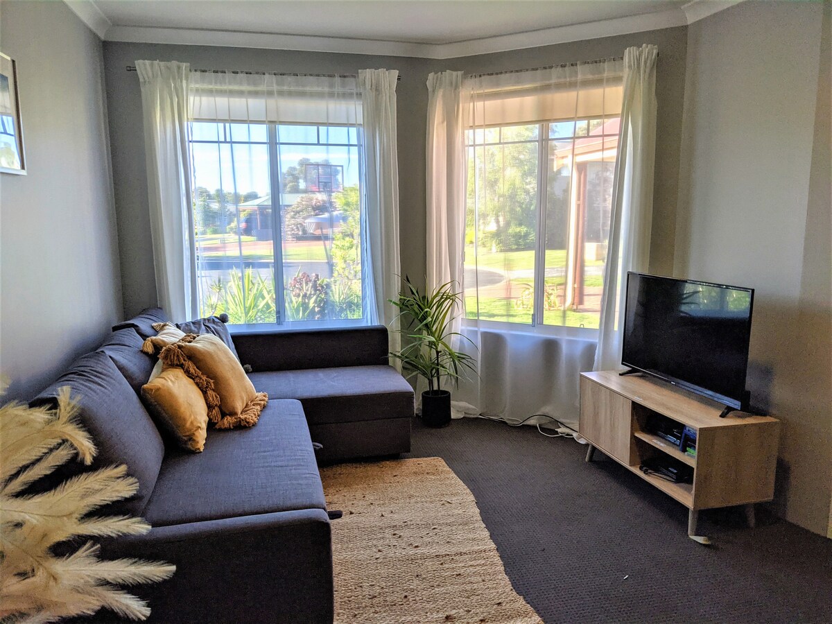 Ngôi nhà hiện đại độc lập với một phòng ngủ, một phòng tắm với đồ nội thất chất lượng có bãi đỗ xe bí mật cho 2 ô tô trong một khu phố yên tĩnh, cách khu trung tâm Bunbury và Trung tâm khám phá Dolphin mang tính biểu tượng 3,5 km. Ngôi nhà một phòng ngủ ấm cúng và rộng rãi này được trang bị để sử dụng xe lăn và tiện nghi.
