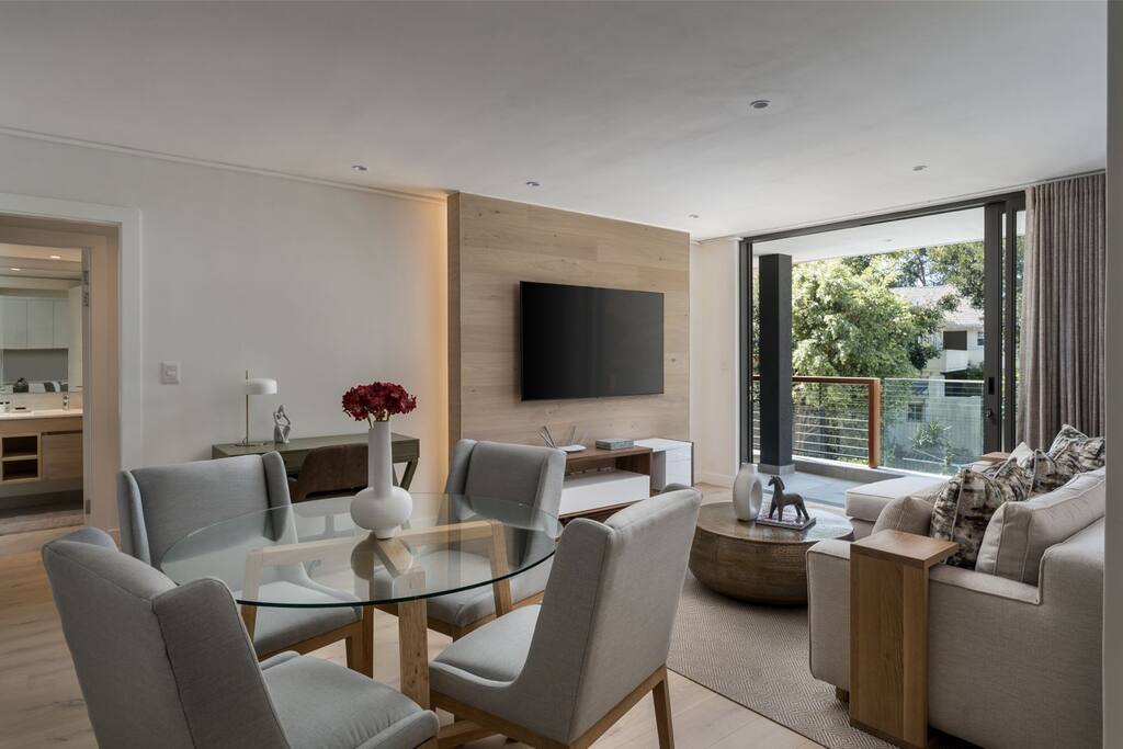 Nằm trên sườn núi Table Mountain giáp với công viên quốc gia, chỗ ở ngoạn mục này có tầm nhìn toàn cảnh núi, rừng và thành phố. Khách có lối vào riêng dẫn đến những con đường mòn trên núi. Cách Vườn bách thảo Kirstenbosch một quãng đi bộ ngắn. 5 - 10 phút lái xe đến Constantia Wine Estates; Newlands Cricket, Sân vận động bóng bầu dục; 1 đèn giao thông đến trung tâm thành phố; 15-20 phút đến các bãi biển mang tính biểu tượng của thành phố. An ninh toàn diện; WIFI không giới hạn, bãi đỗ xe tầng hầm. Một căn cứ hoàn hảo để khám phá Cape Town.