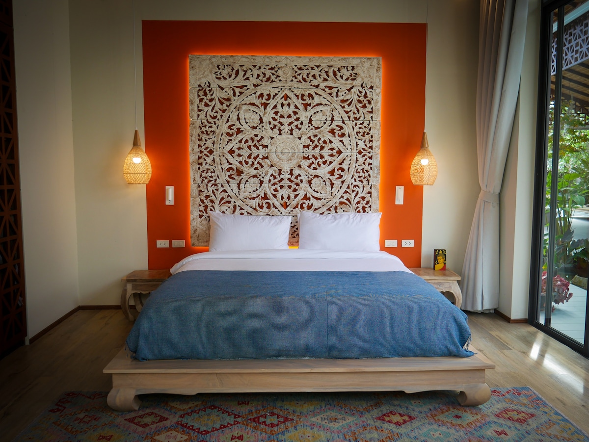 Rộng rãi: Nằm trên bờ biển Bang Por, biệt thự một phòng ngủ này có một không gian nghệ thuật. Không gian sống sáng sủa và thoáng khí, với cửa sổ gỗ lớn mở rộng mang đến tầm nhìn ngoạn mục ra đại dương. Phòng ngủ thoải mái với giường cỡ king và ga trải giường màu trắng. Sân thượng rộng lớn ngoài trời của biệt thự hoàn hảo để tắm nắng và tận hưởng làn gió biển mặn. Biệt thự hướng biển này là điểm đến nghỉ dưỡng hoàn hảo cho các cặp đôi.