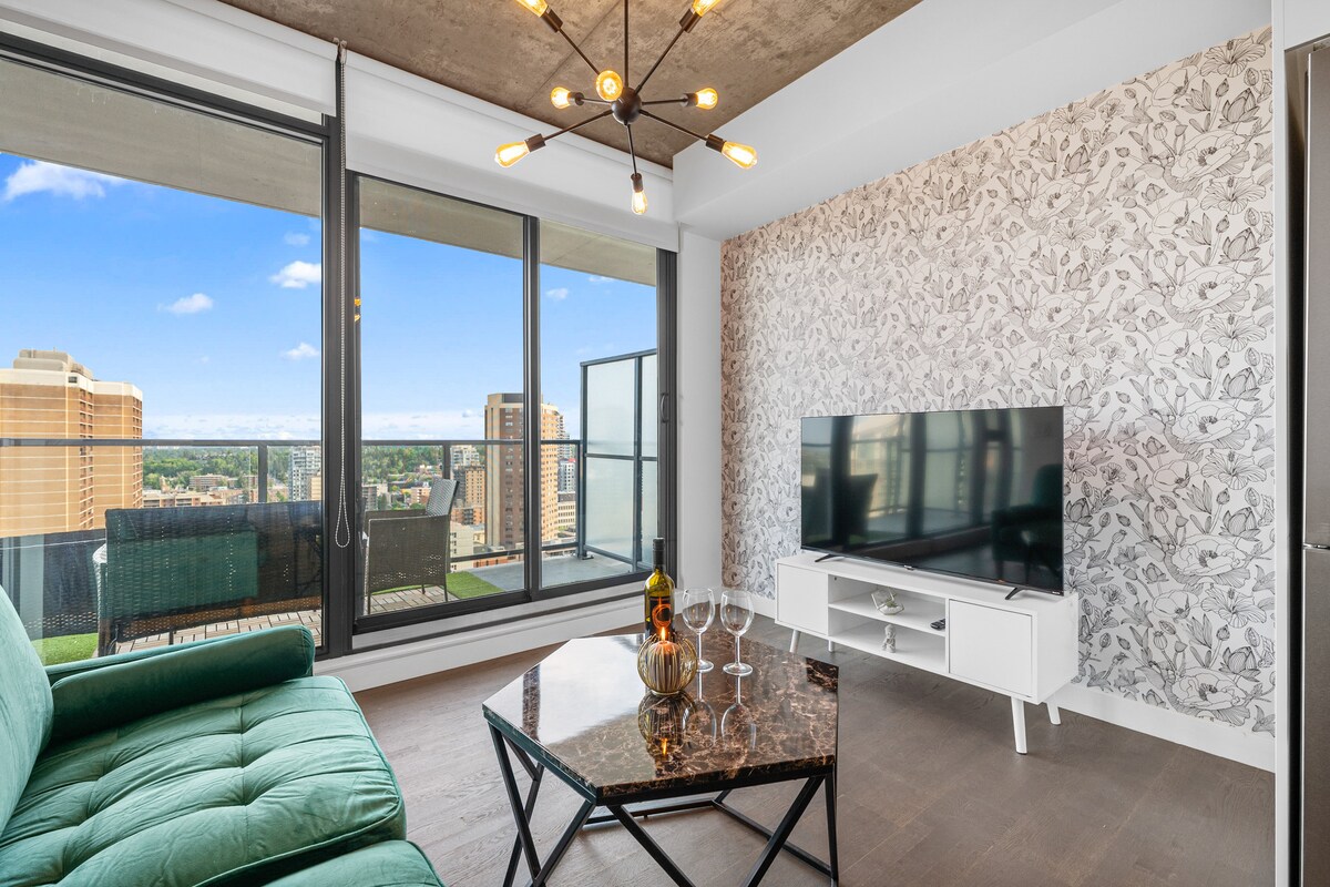 Studio nhiệt đới với tầm nhìn ra trung tâm thành phố Calgary.