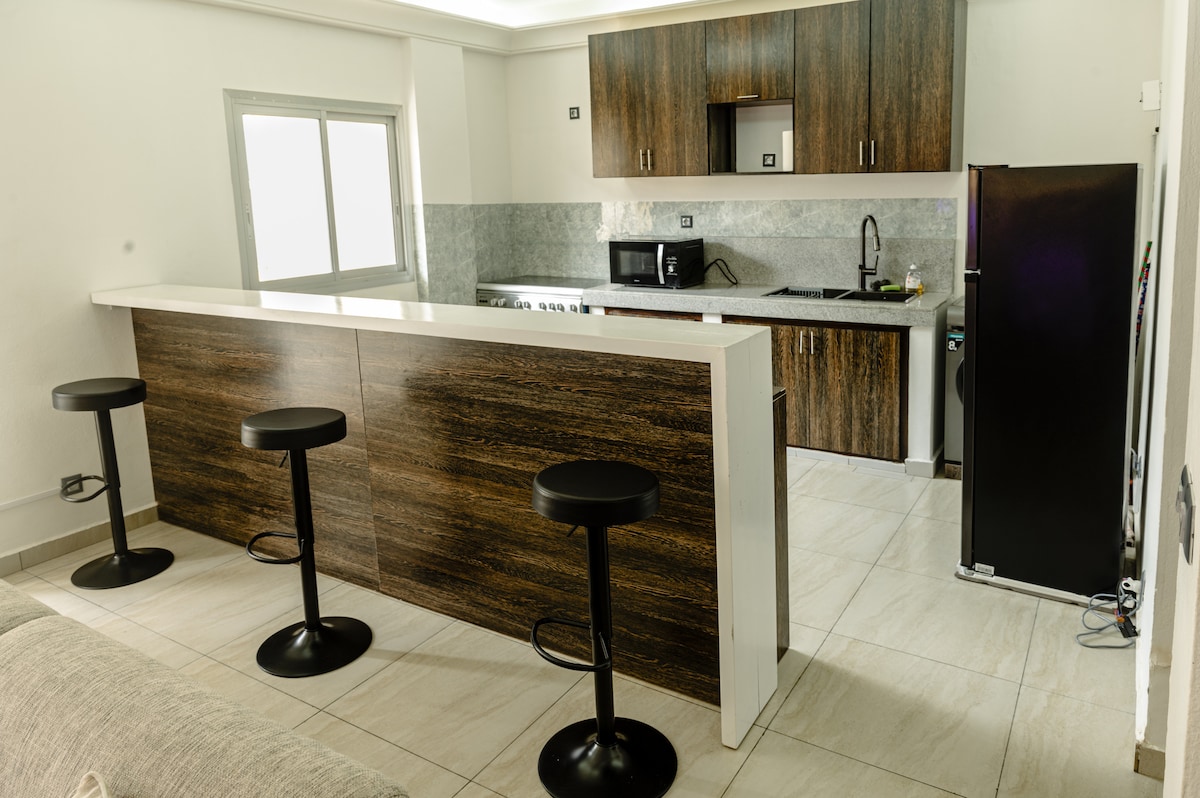 Được cải tạo hoàn toàn, chỗ ở sáng sủa của chúng tôi kết hợp sự thanh lịch của châu Phi và phương Tây. Tọa lạc ngay trung tâm Akwa, nơi đây có lối đi nhanh đến những địa điểm tốt nhất trong thành phố. Tận hưởng nhà bếp hiện đại kiểu Mỹ, Starlink Wi-Fi (120 Mb/s), văn phòng chuyên dụng, cách âm độc đáo với vách ngăn tích hợp, IPTV, điều hòa không khí và máy phát điện. An ninh 24/7 với camera và★ đảm bảo mức độ sạch sẽ 5 sao an toàn.