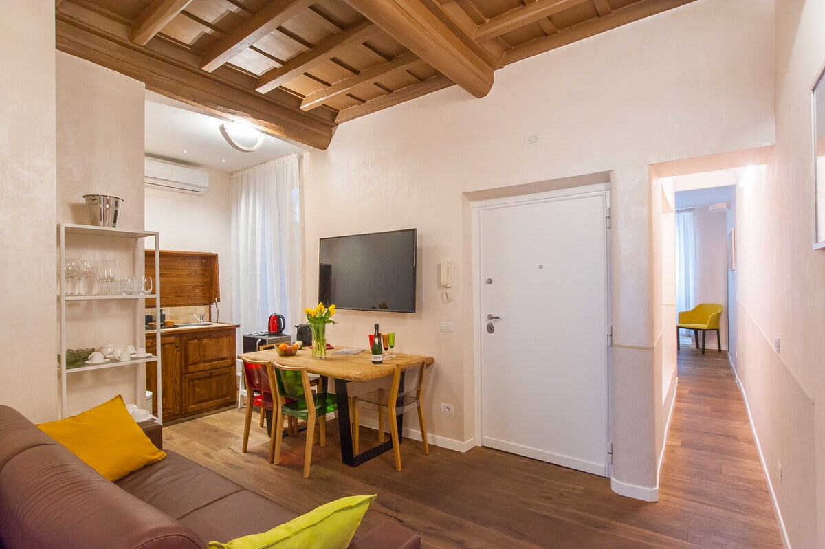 Một viên ngọc quý ở trung tâm Rome, chỉ cách Pantheon, Piazza di Spagna, Via Condotti và Castel Sant'Angelo vài bước chân. Căn hộ, được cải tạo thanh lịch và yên tĩnh, bao gồm phòng khách với bếp nhỏ được trang bị đầy đủ tiện nghi và hai phòng ngủ đôi, mỗi phòng có phòng tắm khép kín. Hai phòng có điều hòa không khí, TV 42inch, quầy bar tủ lạnh, hệ thống philodiffusion và cabin Hammam. Ngoài ra, một trong hai phòng ngủ có bể sục và lò sưởi điện. Mã nhận dạng quốc gia:IT058091C29EAXHT8V