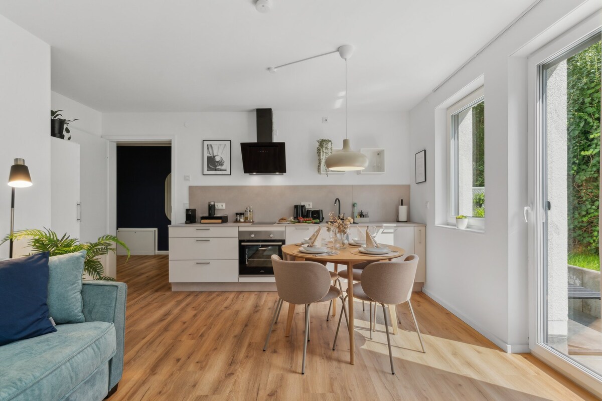 Căn hộ 2 phòng ngủ có chỗ đậu xe, ban công và sân vườn đầy nắng