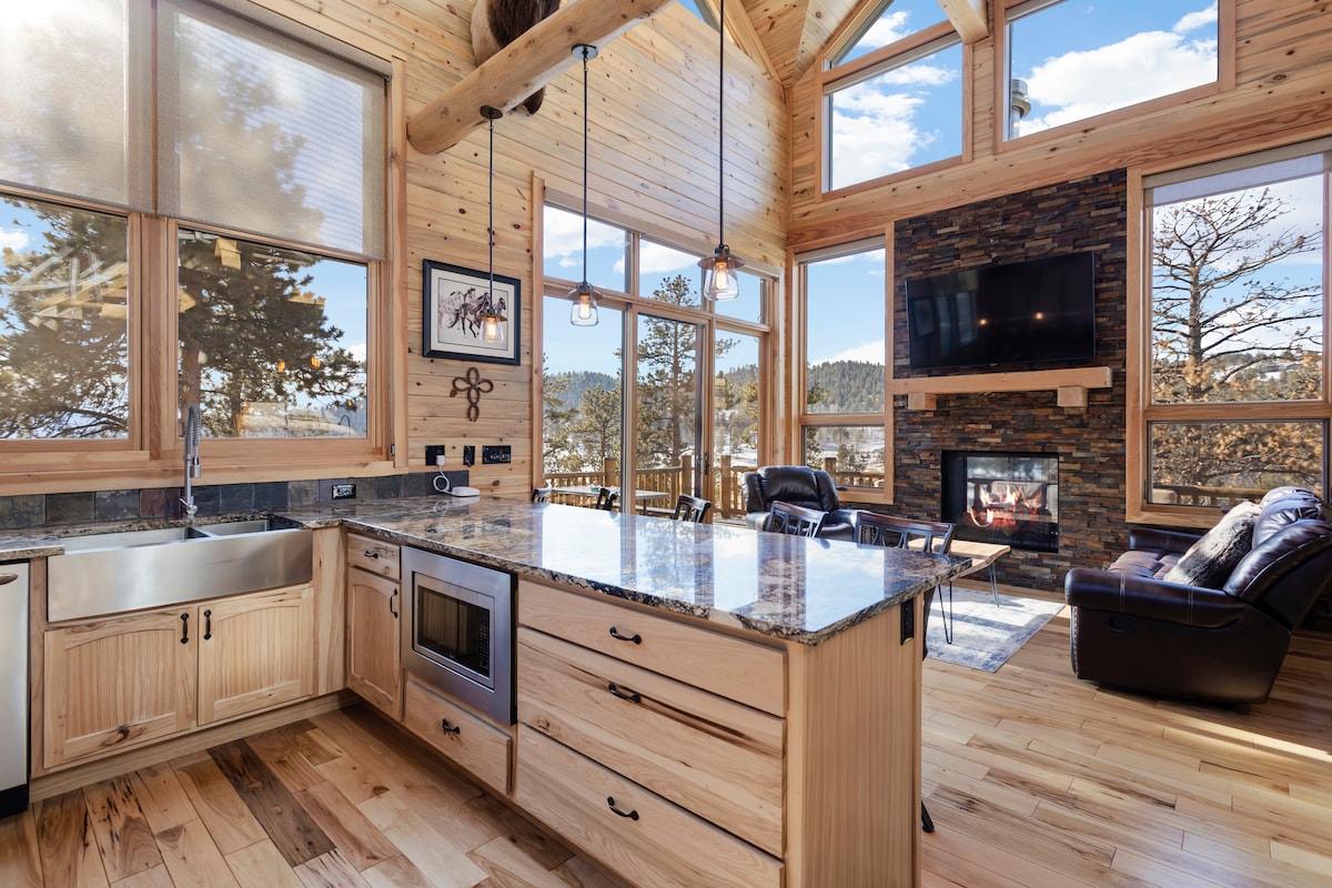 Nơi nghỉ dưỡng trên núi hiện đại với lớp hoàn thiện sang trọng, khu vực giải trí, + thân thiện với gia đình. Có thể ngủ tối đa 4 người với 3 giường, 2 phòng ngủ, + 2 phòng tắm. Bao gồm bồn tắm nước nóng, vòi sen hơi nước, lò nướng gas, lò sưởi, sân hiên có mái che với lò sưởi, bếp của đầu bếp, bãi đỗ xe, động vật hoang dã, + ốc đảo rừng riêng ở sân sau. Dễ dàng đến. Cách Denver khoảng một giờ, cách sân bay 1 giờ 15 phút, gần đường mòn, công viên và hồ. Không tổ chức tiệc tùng, không mang theo thú cưng, không hút thuốc và giới hạn tổng cộng 8 người (bao gồm cả khách).