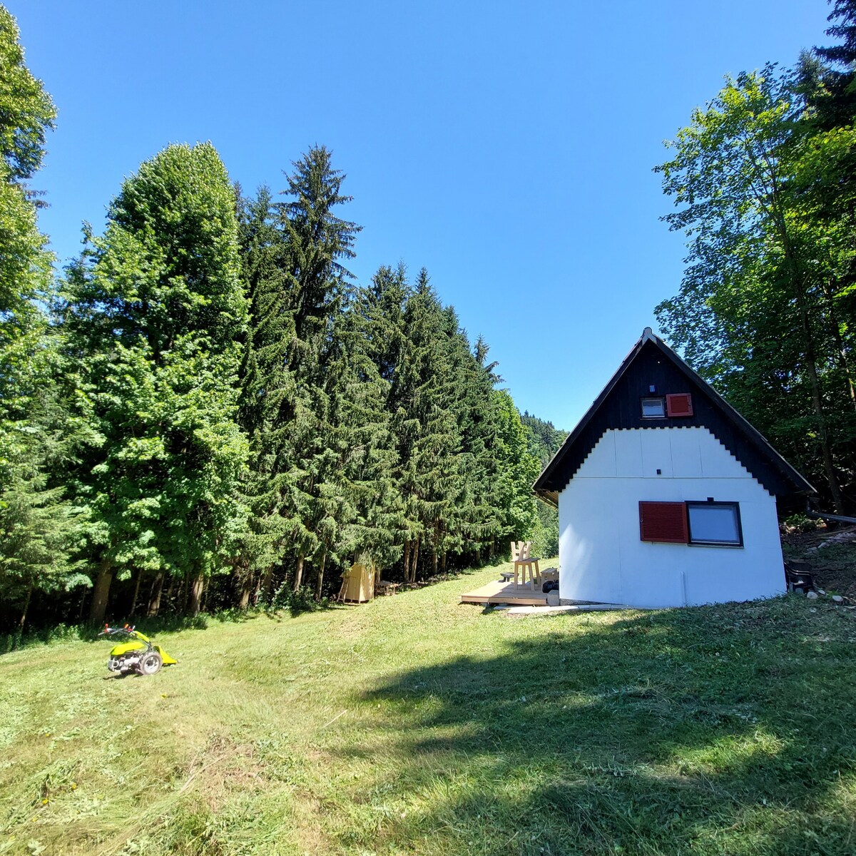 Chào mừng bạn đến với Forest Nest, một ngôi nhà nghỉ dưỡng khung chữ A thơ mộng gần Ljubljana, nằm giữa rừng, trên ngọn đồi Ski-resort Krvavec. Ẩn mình với thiên nhiên thuần khiết xung quanh, mang đến sự riêng tư hoàn toàn (không có hàng xóm trực tiếp) và một nơi nghỉ ngơi hoàn hảo khỏi những rắc rối và nhộn nhịp hàng ngày. Chúng tôi mời bạn sống chậm lại, cuộn tròn với một cuốn sách hay và cà phê ấm, thư giãn trong bồn tắm gỗ dưới những vì sao (thêm 40 €/sưởi ấm) và tận hưởng sự yên tĩnh hoàn toàn để tạo ra những kỷ niệm khó quên.