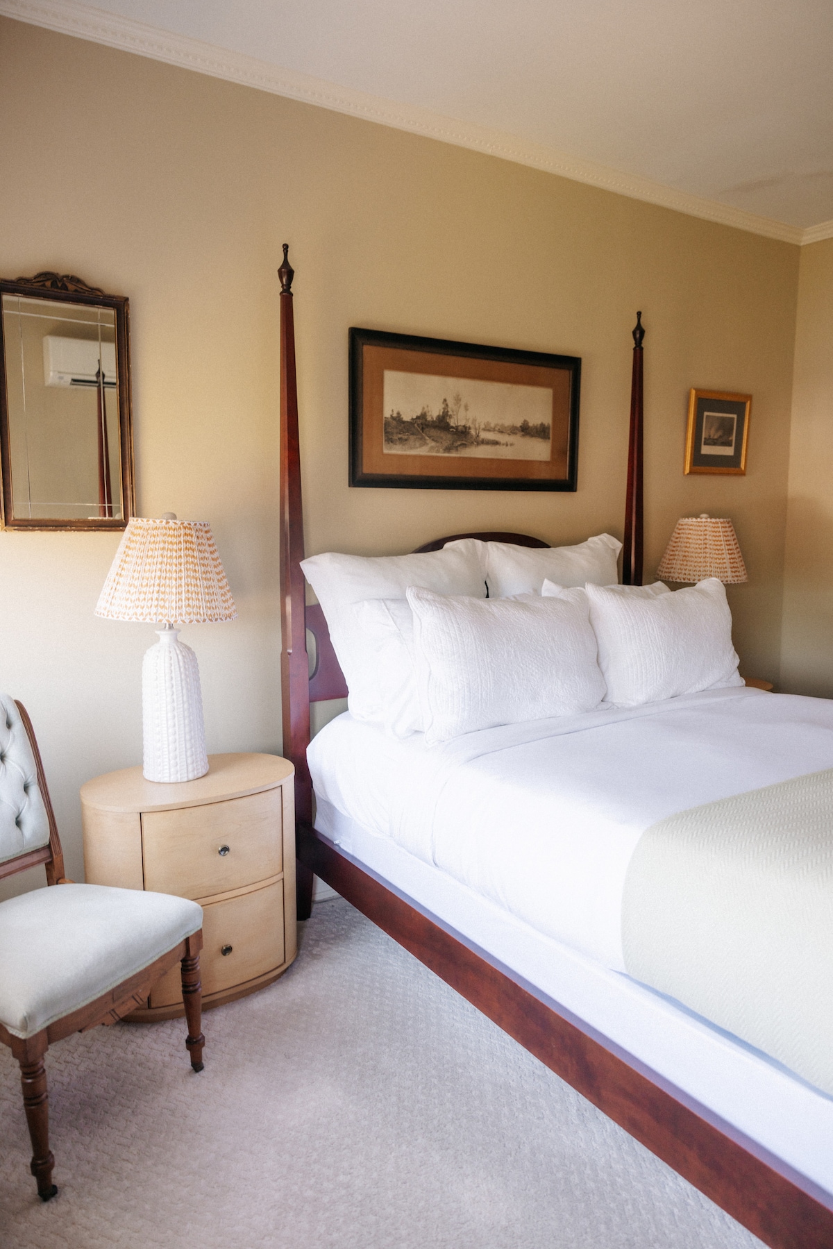 Tucked on the quieter residential side of the Inn, Fielding Lewis offers a restful king bed, period décor, and a private bath with tub and shower. Ideal for couples or families when booked with adjoining Ville de Frejus. Enjoy complimentary breakfast, access to our bourbon tasting room, and peaceful garden views, all just blocks from Fredericksburg’s attractions.