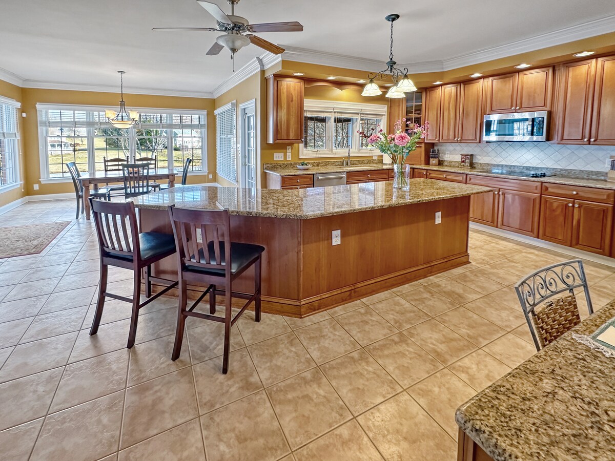Thư giãn tại khu nghỉ dưỡng Lake Anna yên tĩnh này! Ngôi nhà 5 giường, 3 phòng tắm này chào đón bạn với bình minh tuyệt đẹp và hoàng hôn ngoạn mục từ hiên nhà, boong hoặc bến tàu được sàng lọc của bạn. Phòng khách chính khái niệm mở có tầm nhìn toàn cảnh ra mặt nước trong phòng khách ấm cúng, khu vực tiếp khách, nhà bếp rộng rãi với quầy bar và khu vực ăn uống cho 10 người. Tầng dưới có 2 phòng ngủ, phòng tắm, phòng gia đình và hơn thế nữa. Với một phòng trò chơi và bến tàu để chèo thuyền, câu cá hoặc tắm nắng, nơi nghỉ ngơi thanh bình bên hồ này là nơi nghỉ ngơi hoàn hảo của bạn!