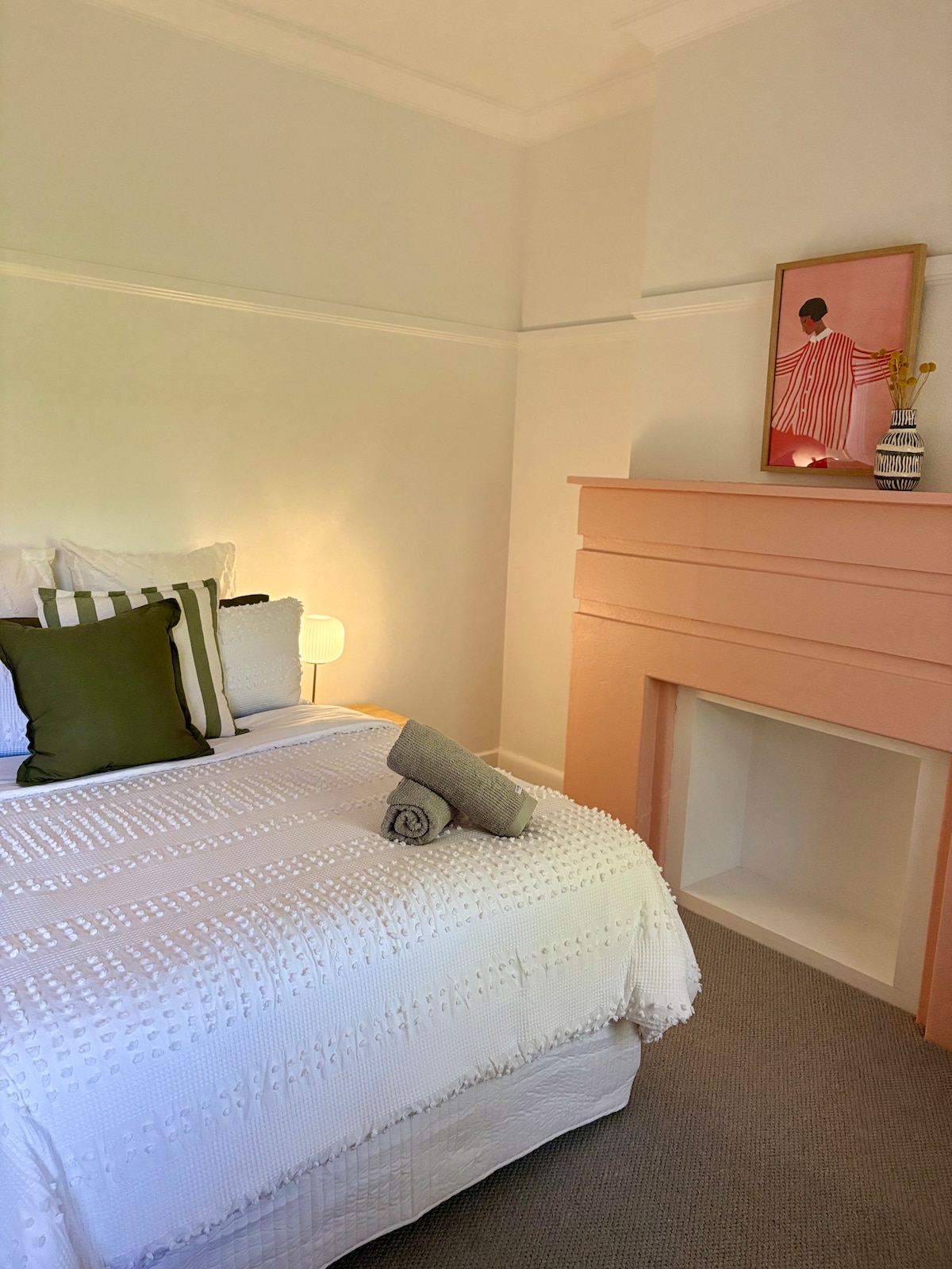 House Halls on Sale Street là một sự pha trộn chiết trung giữa mới, cũ và kỳ quặc. Đã hơn 100 năm tuổi, được xây dựng giữa thời Victoria và thời Liên bang, tôi cảm thấy thoải mái, tiện dụng và rất trung tâm của Orange CBD. Được mua vào năm 2020, tôi là một dự án dài hạn và là ngôi nhà vĩnh cửu của Michael và Beck khi họ nghỉ hưu. Ba phòng ngủ của tôi đều có tên riêng: Elizabeth - xanh dương, Victoria - cam và Dorothy - màu hồng (xem bạn có thể tìm thấy tên cô ấy trong tủ không!).