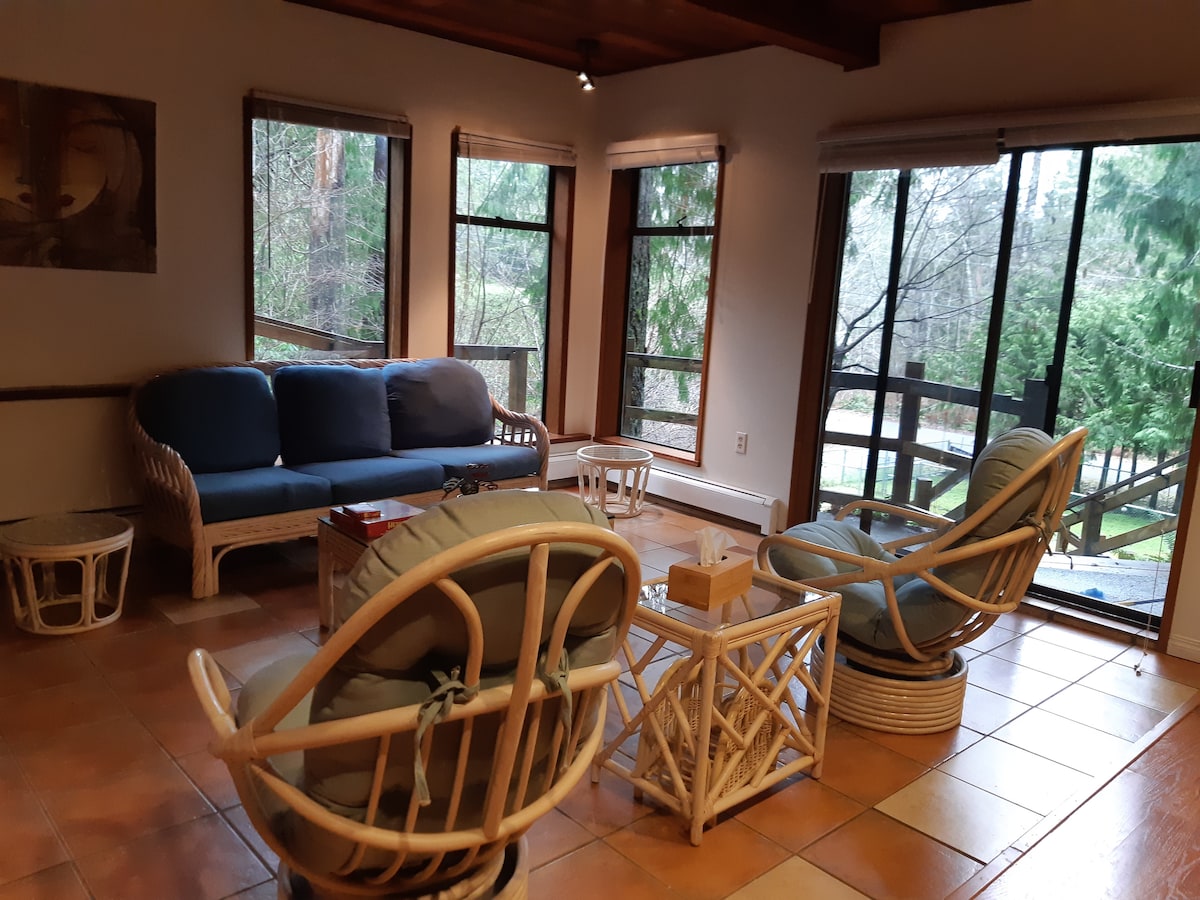 Nằm trong một trang trại đang hoạt động, ngôi nhà nhỏ của chúng tôi có lối đi nhanh đến Bãi biển Qualicum, hồ và đường mòn. Tận hưởng buổi tối bên lò sưởi và thức dậy với không khí trong rừng. Đóng gói giày đi bộ đường dài hoặc cần câu vì chúng tôi tập trung vào khu vực giải trí tốt nhất trên đảo Vancouver....hoặc mang theo một cuốn sách và rúc vào cuối tuần. Không gian này được tạo ra để các cặp đôi tận hưởng không gian yên bình và thời gian tránh xa sự hối hả của cuộc sống hàng ngày. Mọi thứ bạn cần - không có gì bạn không cần!