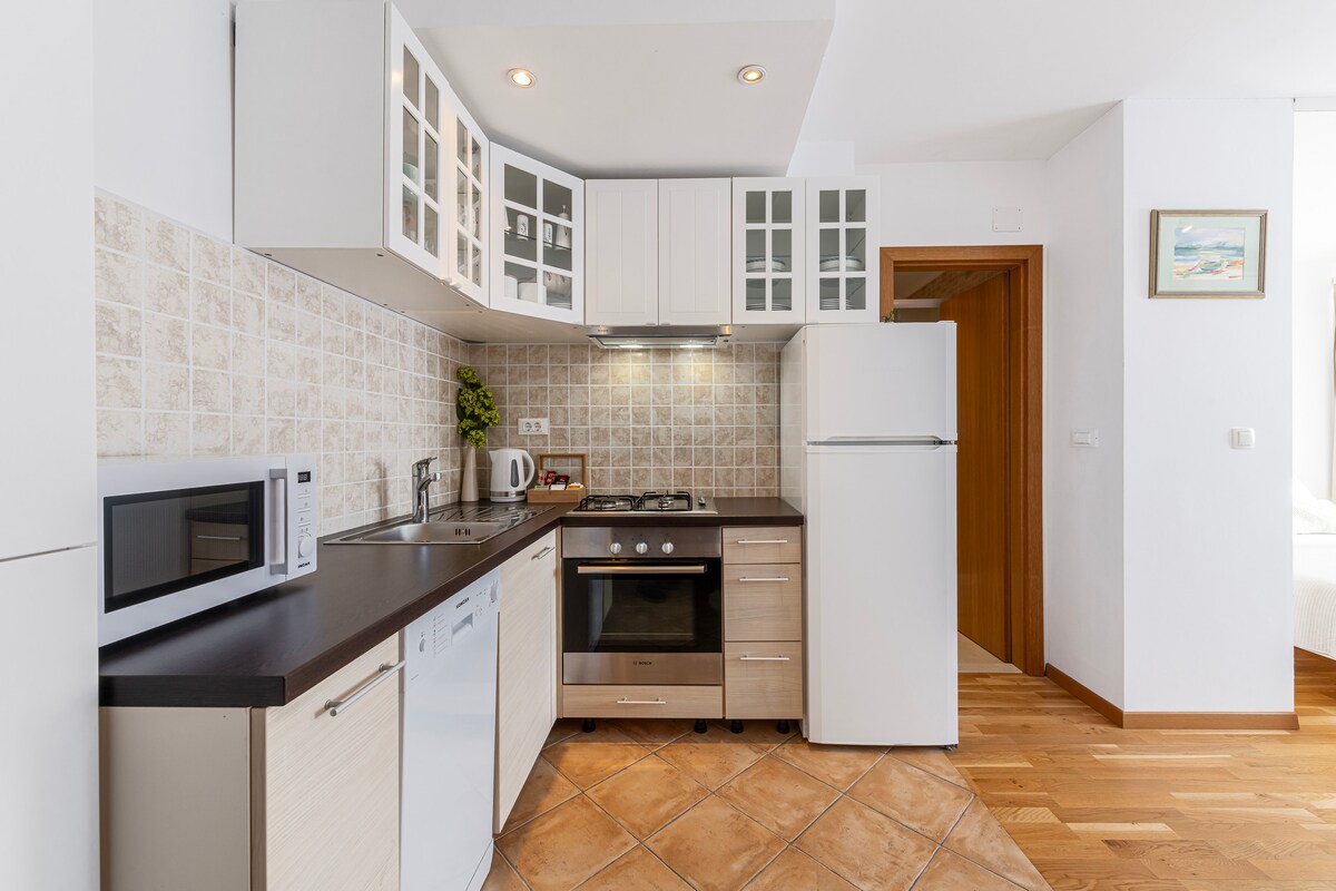 The apartment is newly renovated, has two bedrooms, a dining room connected to the kitchen and a bathroom. The house is built in the 17th century, overlooking the Mlini harbour and the beach. It comes with a huge garden with lemon and orange trees, grape wives and fig trees and also has outdoor grill and fire place. The village's second oldest tree can be found in the garden, that is 200 years old. Important information: the house is only accessible by stairs and we do not have private parking.