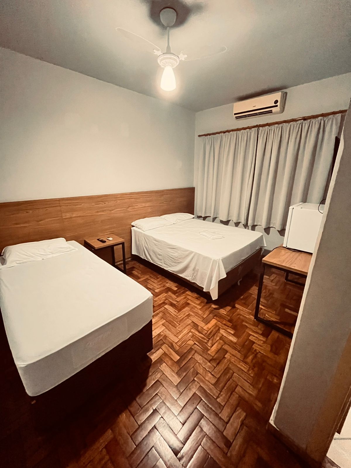 Phòng có một giường đôi + 2 giường đơn. Nó có Wi-Fi, điều hòa, TV thông minh và két sắt. Phòng tắm riêng bao gồm khăn tắm, dầu gội đầu, dầu xả, xà phòng và máy sấy tóc. Khu phức hợp nằm trên Avenida das Cataratas và cung cấp các tiện nghi để thuận tiện cho bạn. Trong tòa nhà, bạn sẽ tìm thấy dịch vụ giặt ủi tự phục vụ, đổi tiền, đại lý du lịch, cho thuê xe hơi, tàu điện ngầm và tiện lợi 24 giờ với máy ATM để ngân hàng bất cứ lúc nào.