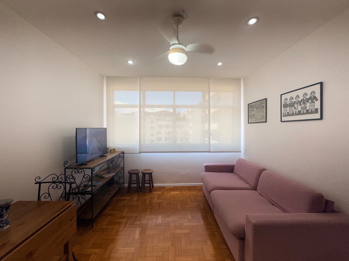 Loft recém reformado, com decoração praiana, fechadura digital, quarto e sala integrados com cozinha americana e totalmente equipada. Moderno e seguro, esta acomodação fica em um condomínio com portaria 24h e câmeras de segurança, em uma das melhores localizações de Copacabana (posto 5), ao lado do Museu da Imagem e do Som, com vista para o mar, cercado de uma grande variedade de serviços, como bares, restaurantes, lavanderias, mercados, bancos.
