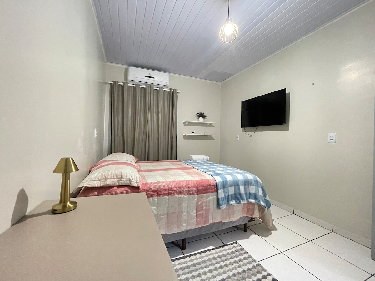 Căn hộ riêng lẻ, một nửa mộc mạc với không gian rộng lớn, có điều hòa không khí và thoải mái bao gồm: Giường hộp đôi, hack, TV Smart 43", vẹt đuôi dài bằng gỗ với giá để giày, tủ quần áo nhỏ. Bàn có ghế, minibar, tủ có dụng cụ gia đình, bếp điện (2 miệng), lò vi sóng, chảo chiên không khí, bánh sandwich và máy xay sinh tố. Nó chứa wi-fi và có vị trí tốt, cách sân bay Int de Boa Vista khoảng 5 phút, gần siêu thị, nhà thuốc, phòng tập thể dục, trường cao đẳng, báo chí, v.v.
