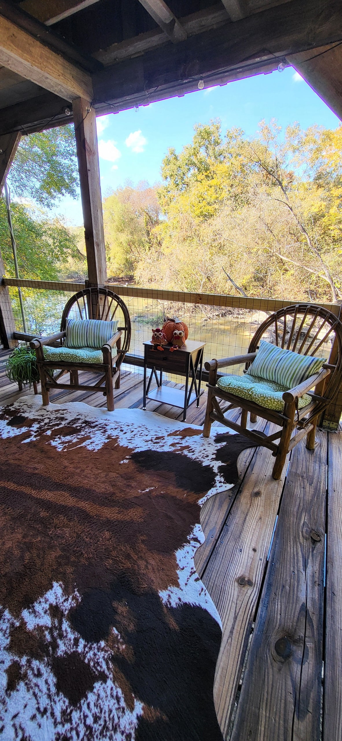 You won’t forget the peaceful surroundings of this rustic destination. Private gated property with outdoor seating and fire pit. Privacy fence surrounding this space right in the middle of town. Walking distance to grocery and eating . Sleeping for 4 must be adventurous and able to climb the ladders up to the lofted sleeping areas. Also once up in the loft movement will be limited to crawling in this area. It’s got a low ceiling and guest will not be able to stand up in the sleeping area’s