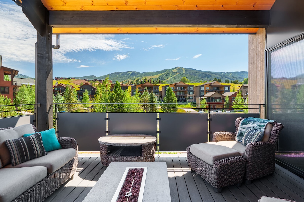 Căn hộ sang trọng ở trung tâm thành phố Steamboat, có gara, máy lạnh và tủ đựng đồ trượt tuyết.