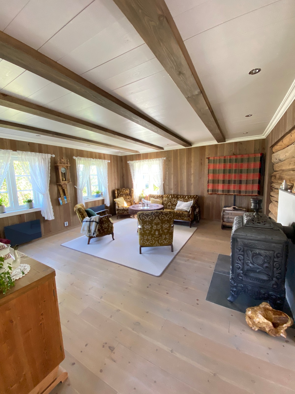 Cozy and stylish apartment in a converted old barn on our traditional Norwegian farm. Nestled in the heart of the Norwegian countryside. From the windows, you’ll enjoy a stunning view of a picturesque valley, with open fields and forests stretching across the landscape. Come and experience the perfect blend of rustic charm and modern comfort on our farm. The apartment features recycled materials and solar panels for green energy year-round. Welcome! #Laavely_snertingdal