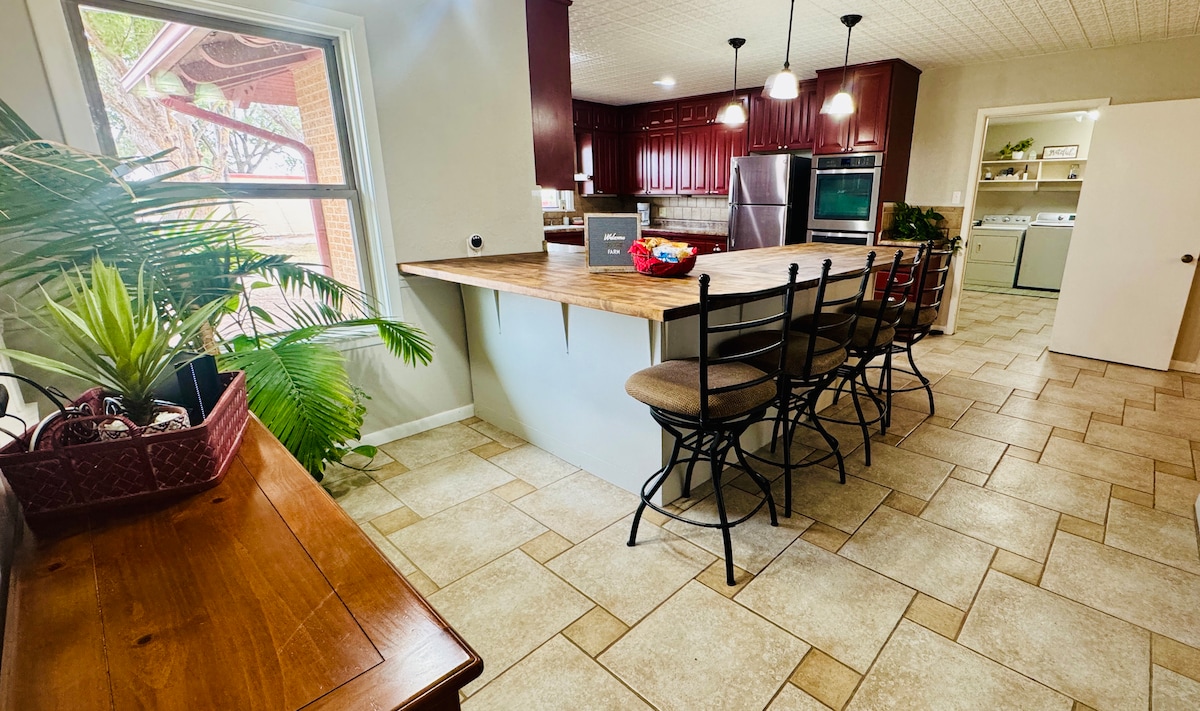 Toàn bộ nhà do Mo đăng cho thuê Nhà này được bố trí cho các gia đình hoặc cá nhân trong khu vực để làm việc hoặc vui chơi (internet tốc độ cao được cung cấp). Chưa đầy 15 phút đến Borger. Nó có 4 phòng ngủ (bao gồm tổng cộng 7 giường) và 1-1/2 phòng tắm. Ngôi nhà này có mọi thứ bạn cần cho một nhóm bạn hoặc một kỳ nghỉ gia đình. Nhà bếp được trang bị tốt cho nhu cầu nấu ăn của bạn. Máy giặt/máy sấy để bạn sử dụng. Sân sau với bếp nướng trên boong và vọng lâu để giải trí. Bãi đỗ xe có mái che đôi quá khổ! Khu vực yên tĩnh