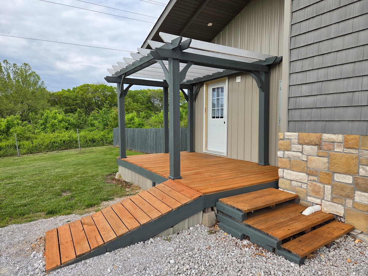 Chào mừng đến với Rustic Hideaway Guesthouse! Nhà khách rộng rãi và hấp dẫn này có chỗ ở cho tất cả mọi người, với 2 giường Queen, giường cỡ King và giường tầng đôi, hoàn hảo để thư giãn sau một ngày vui vẻ ở Branson. Tận hưởng khung cảnh tuyệt đẹp của đường chân trời Branson và những ngọn đồi Ozark đẹp như tranh vẽ từ chỗ ở. Chỗ ở này có lối vào thuận tiện, có bậc lên hiên nhà và vào tòa nhà.