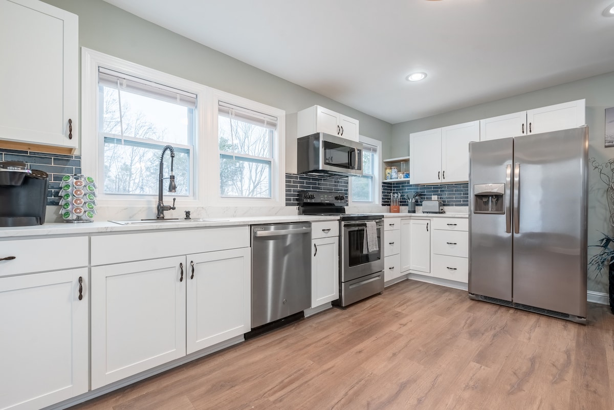 "Beulah Beauty" has been thoughtfully and completely renovated for short-term stays — every detail designed to make your visit effortless and comfortable. Tucked just off I‑40 in Statesville, the home offers ideal access to regional destinations: 15 minutes to Hickory and roughly 45 minutes to both Charlotte and Winston‑Salem. Whether you’re here for work, a weekend escape, or to explore the nearby mountains and city attractions, this property is a convenient, stylish home base.