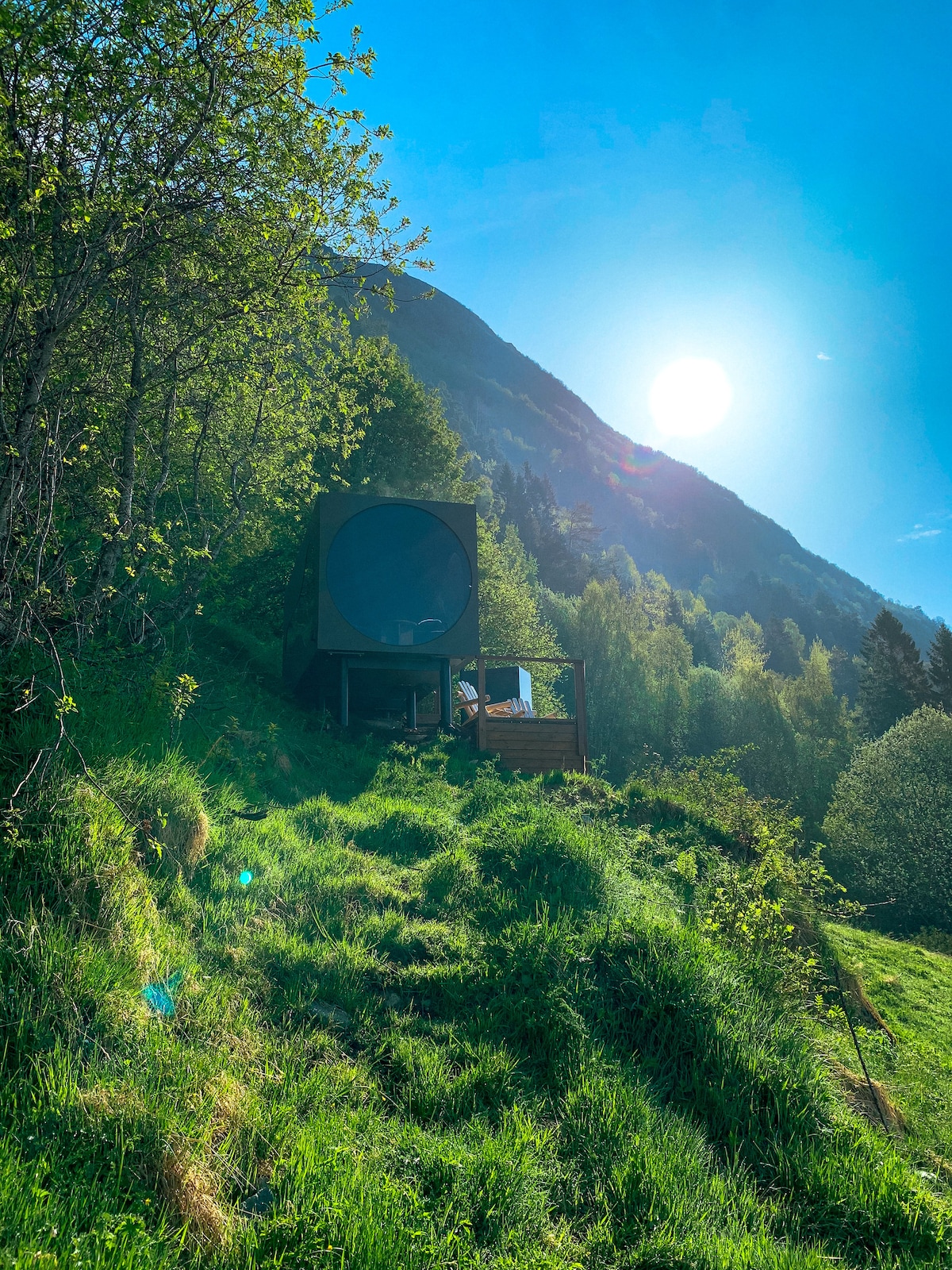 Trải nghiệm tầm nhìn tuyệt vời ra Geirangerfjord và những ngọn núi ở Na Uy với gia đình hoặc bạn bè của bạn. Tận hưởng sự thay đổi của thời tiết trong khi uống trà ấm, và kết thúc ngày của bạn trên một chiếc giường đôi ấm cúng trong khi nhìn những vì sao qua cửa sổ trời. Bạn ngủ quên với âm thanh của dòng sông đi qua, và thức dậy với khung cảnh của một con chip du thuyền đi vào làng. Geiranger Fjord nằm trong danh sách di sản thế giới của UNESCO và có một khu bảo tồn thiên nhiên tuyệt đẹp đáng để ghé thăm.