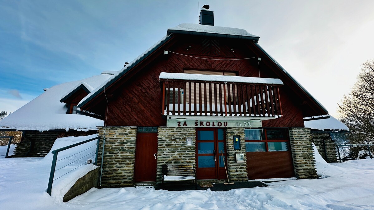 Hãy đến và thư giãn từ cuộc sống bận rộn đến nhà nghỉ thôn dã của chúng tôi ngay trung tâm Dãy núi Khổng lồ. Tất cả các tiện nghi từ nước nóng đến điều hòa không khí đều là vấn đề. Một sân hiên bằng kính cho phép bạn tận hưởng vẻ đẹp xung quanh của thiên nhiên từ sự thoải mái của nội thất. Ở đây bạn có thể thưởng thức cà phê buổi sáng hoặc một bữa tối lãng mạn. Có bếp đầy đủ tiện nghi và lò nướng ngoài trời. Và sức khỏe? Trong bồn tắm nước nóng ngoài trời ngoài trời quanh năm của chúng tôi, bạn sẽ quên tất cả những lo lắng của mình!