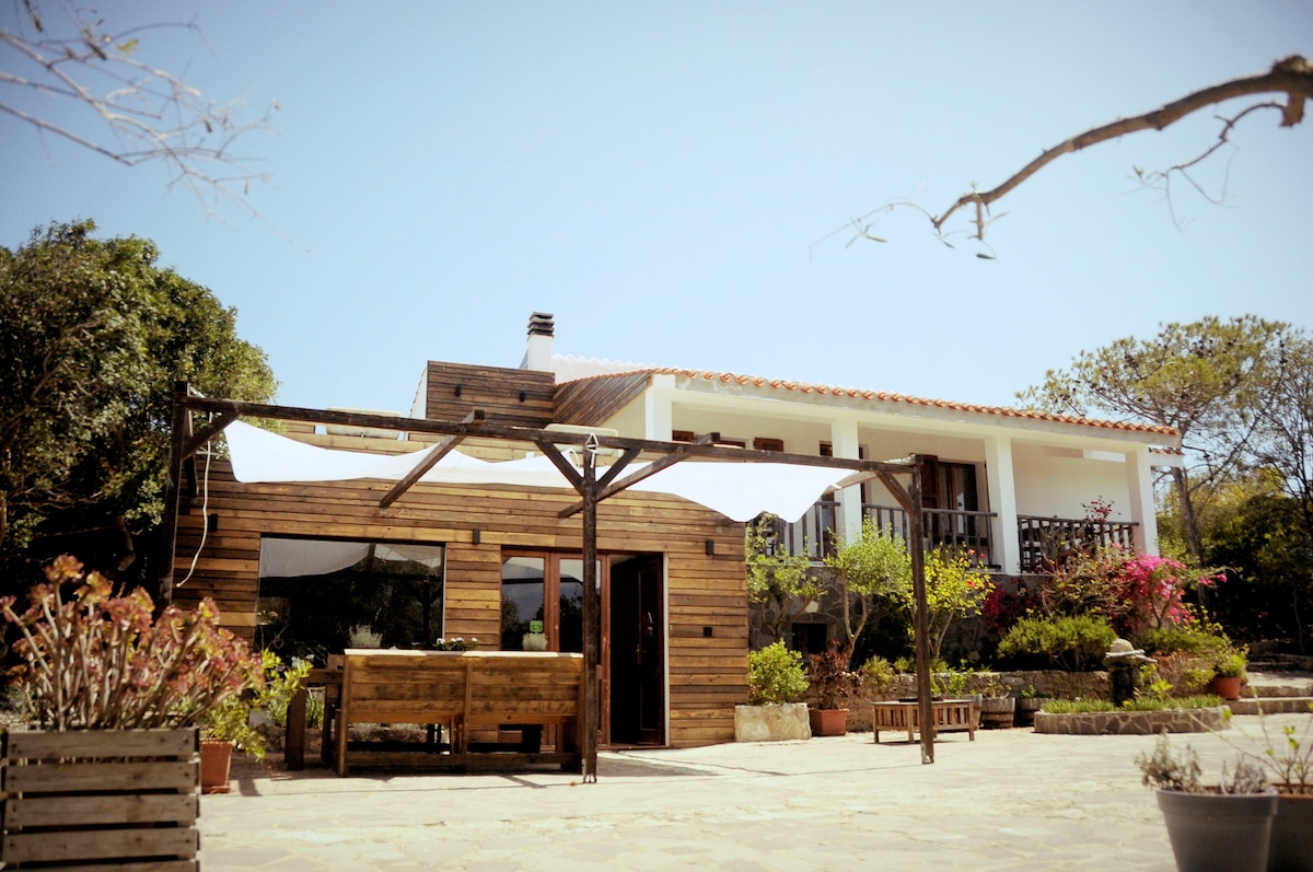 Bellissimo monolocale soppalcato con ampia veranda panoramica. È il più grande di due piccoli appartamenti attigui -con ingresso indipendente- di una casa di campagna realizzata nel 2019, Sa Canistedda. Sa corbe può ospitare un massimo di 4 persone. Al piano terra ci sono la zona giorno e il bagno; il soppalco ospita la zona notte. La veranda è dotata di una comoda doccia esterna ed è ideale per pranzi e cene all’aperto. Il giardino e l’area gioco possono essere condivisi.