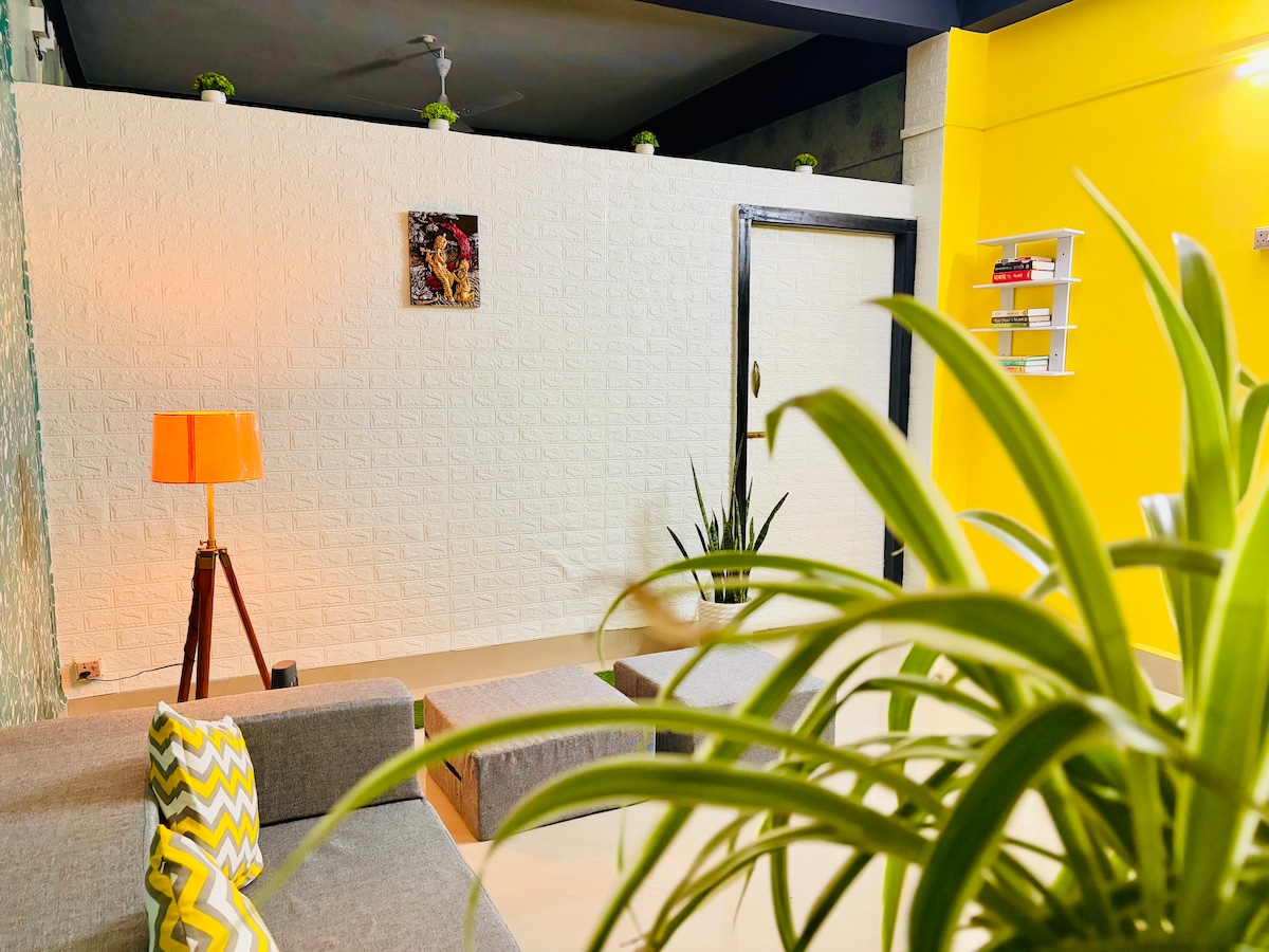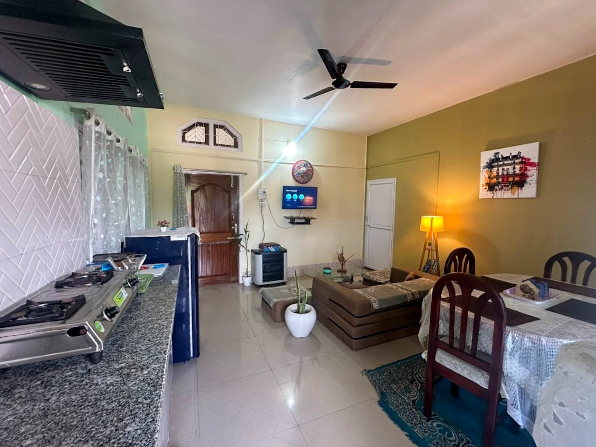 A full apartment with all the necessary amenities and parking. 1.5km/1 mile away from main town. Easy communication throughout day. 1 Queen Bed, 1 Double Bed, Kitchen and Living room. Unmarried couple friendly with valid govt ID. Services with Extra Charges: 1) Car Pickup and Drop. 2) Access to Yoga Session at Earth Yoga Studio. 3) Bonfire. 4) Above 2 person there are extra charges. 5) If your pet makes the space dirty there is an extra ₹400 cleaning charges. You’ll feel right at HOME.