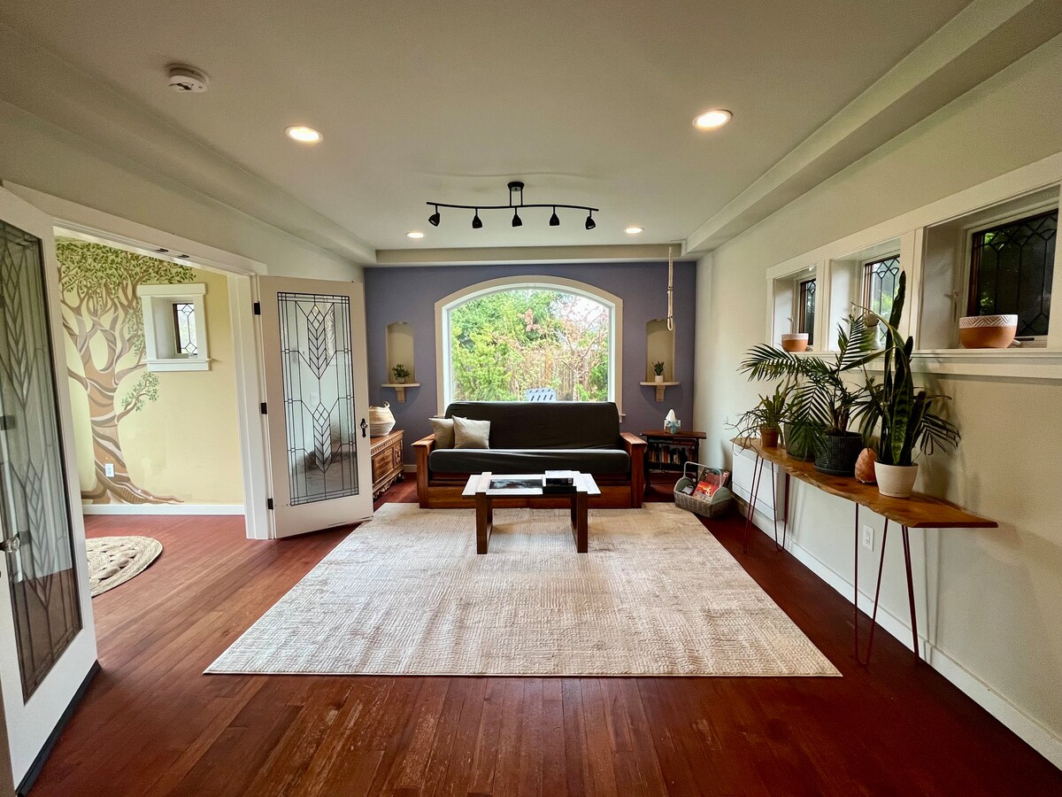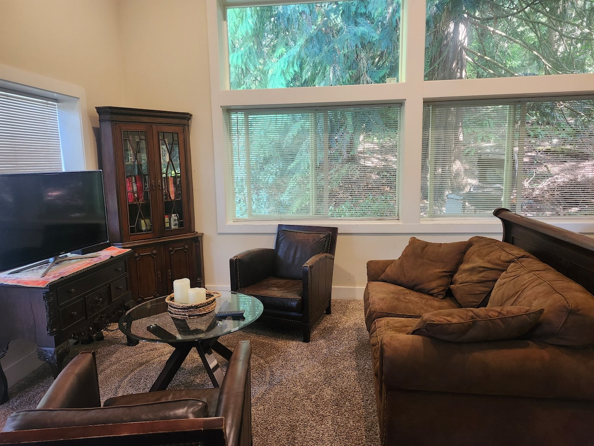 Feel like you’re in your own hideaway, as you live secluded in the trees. Leave your cares behind and enjoy the peace and quiet of nature in our spacious and unique cabin “tree home." Scenic balconies, hiking trails and Lake Whatcom are minutes from your front door! Whether it’s staying in to relax or hitting up the Stimpson Reserve down the street, you will find our cabin the perfect place for families or traveling couples to find relaxation and refuge. We’d love to host you soon!