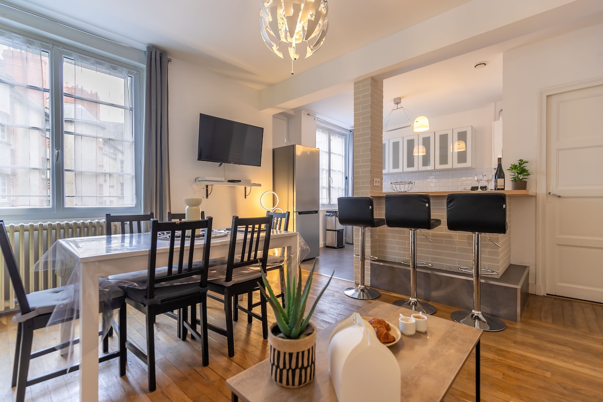 Tận hưởng một căn hộ thanh lịch và mới được tân trang lại ngay trung tâm thành phố lịch sử. Nằm dưới một con hẻm đá từ nhà thờ và ném một tảng đá đến bờ sông Loire, nó cho phép bạn tận hưởng tham quan. Bạn có thể dễ dàng đến các quán rượu và nhà hàng địa phương ở các đường phố gần đó. Sau đó, bạn có thể nghỉ ngơi yên tĩnh trong căn hộ ấm cúng và thoải mái này tránh xa sự nhộn nhịp trong ngày. Truy cập thông qua khóa thông minh. Không hút thuốc. Không mang theo thú cưng.