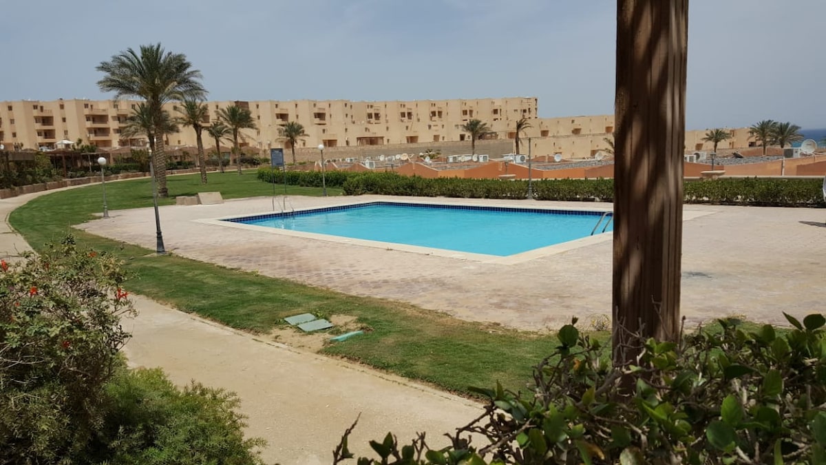 Thoát khỏi nhà gỗ chalet ấm cúng của chúng tôi với hồ bơi tuyệt đẹp và tầm nhìn ra biển. Chỗ nghỉ dưỡng 2 phòng ngủ này bao gồm một giường cỡ king, 2 giường đơn, một giường gấp và một nệm hơi. Các lựa chọn giải trí: PlayStation, UNO, v.v. Thư giãn trên ban công riêng hoặc tại bãi biển, chỉ cách 250 m. Gần Porto Sokhna, KFC, McDonald's và một siêu thị mini. Lý tưởng cho gia đình, cặp đôi và bạn bè. Thuê thuyền kayak của chúng tôi với giá 800 EGP/ giờ và tận hưởng làn nước!
