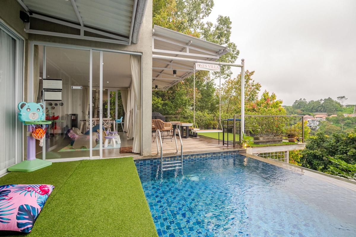 Biệt thự riêng, cảnh quan đẹp trong suốt cả ngày cho đến đêm, không khí sạch sẽ và trong lành. Khu vực ban công ấm cúng hoàn hảo để chỉ trò chuyện và nướng thịt ngoài trời. Hồ bơi vô cực riêng và sân thượng có tầm nhìn tuyệt vời. một biệt thự với bầu không khí tuyệt vời, với các tiện nghi giải trí (bi-a và karaoke), gần nơi có các quán cà phê nổi tiếng nhất ở thành phố bandung đối với khách sống với trẻ mới biết đi, chúng tôi cung cấp một khu vui chơi cho em bé yêu quý của bạn, vì vậy họ tham gia vui vẻ tận hưởng kỳ nghỉ của bạn