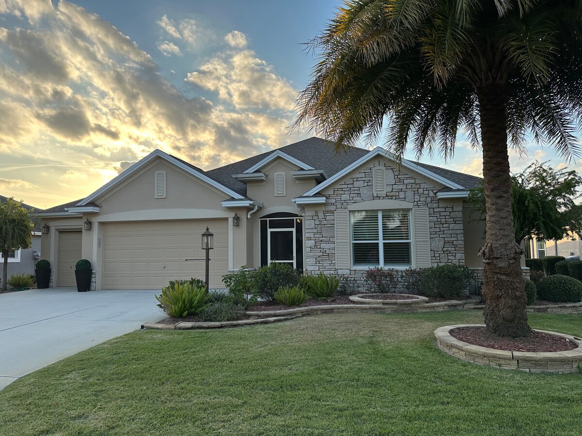 Tận hưởng trải nghiệm phong cách tại ngôi nhà 3 phòng ngủ nằm ở trung tâm này. 5-7 phút đi xe golf từ Sumter Landing, cách Quảng trường Spanish Springs 15 phút, cách Quảng trường Brownsville 20 phút. 200 bể bơi cộng đồng chỉ dành cho người lớn và một số cho các gia đình. 13 Trung tâm giải trí với Pickle Ball, Shuffleboard, Billiards, Nhóm học tập, v.v. 3 Quảng trường Old Fashion Town với giải trí trực tiếp hàng đêm. 44 sân golf